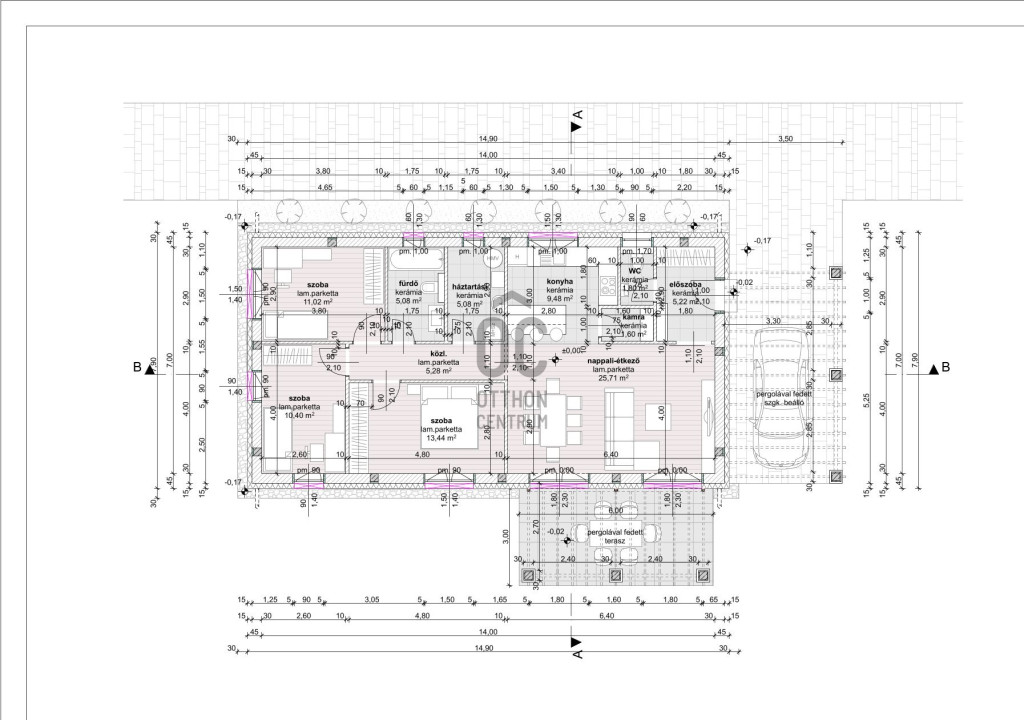 * 94,1 nm hasznos alapterület + 18 nm-es pergolával fedett terasz