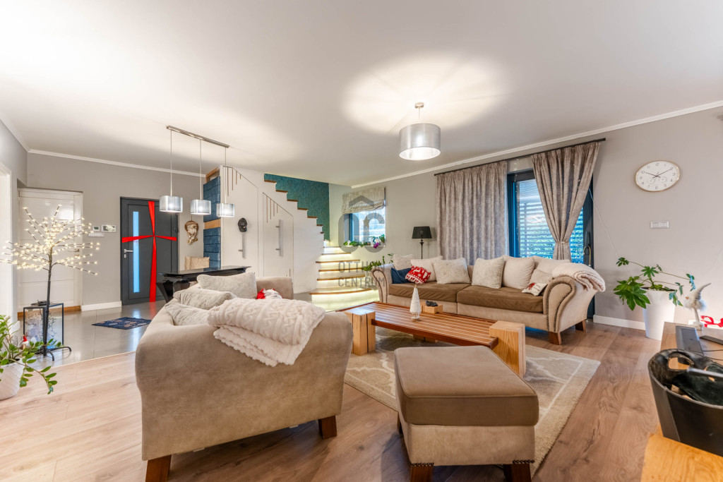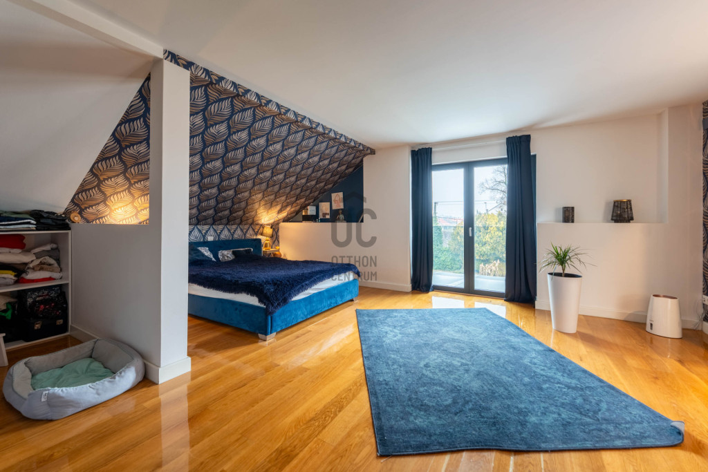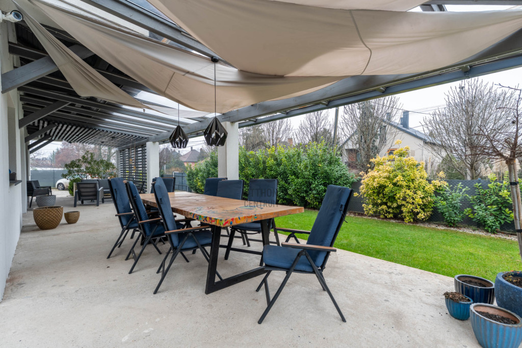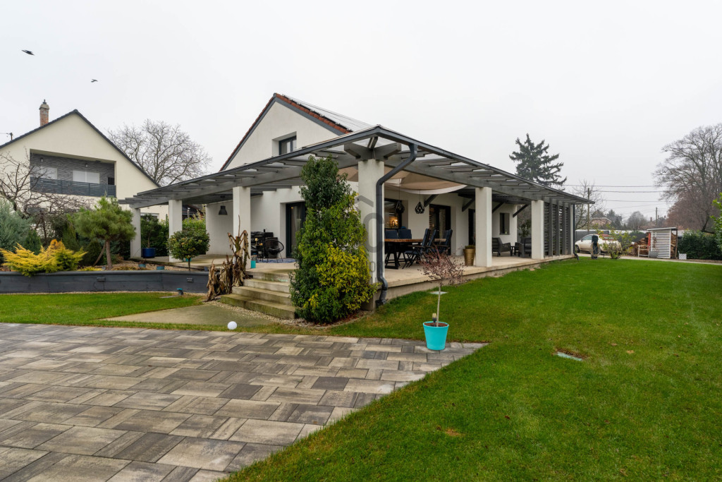 Eladásra kínálunk Székesfehérváron, Öreghegy könnyen megközelíthető részén, egy 260nm-es (bruttó 312nm) két szintes, nappali + öt szobás, három fürdőszobás, dupla garázzsal (36nm) rendelkező, exkluzív családi házat.A ház 1311nm telekre épült, egy 50nm-es boros pince is található a ház alatt.