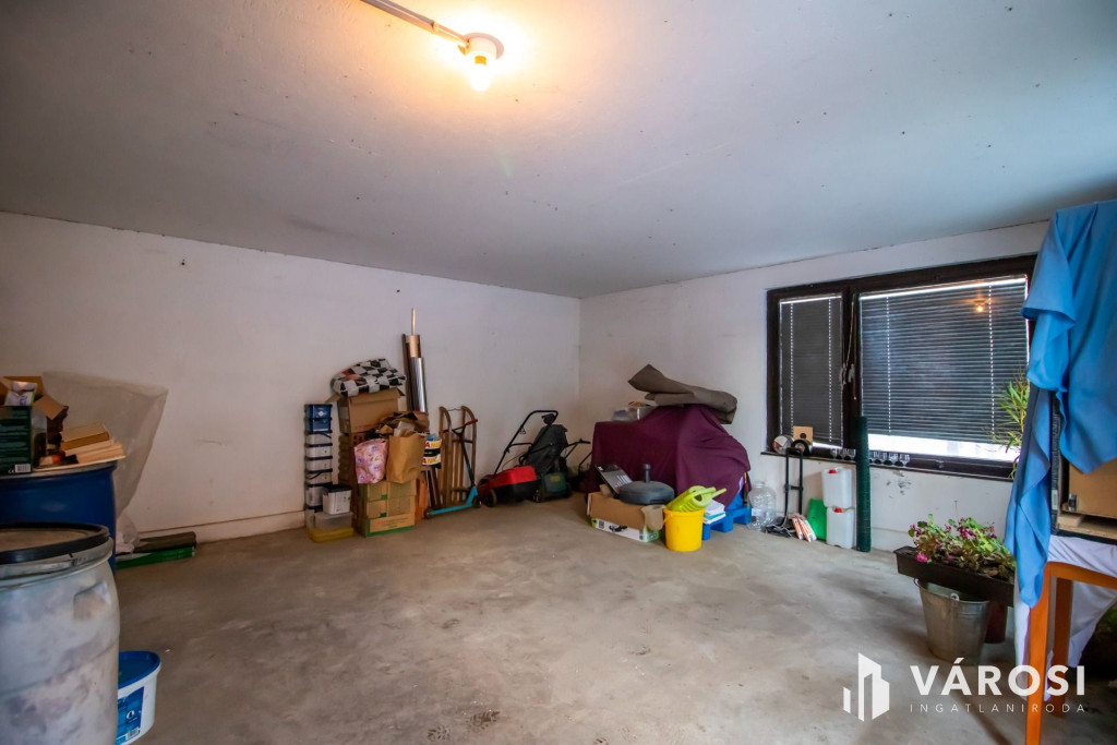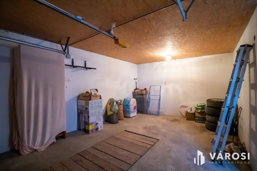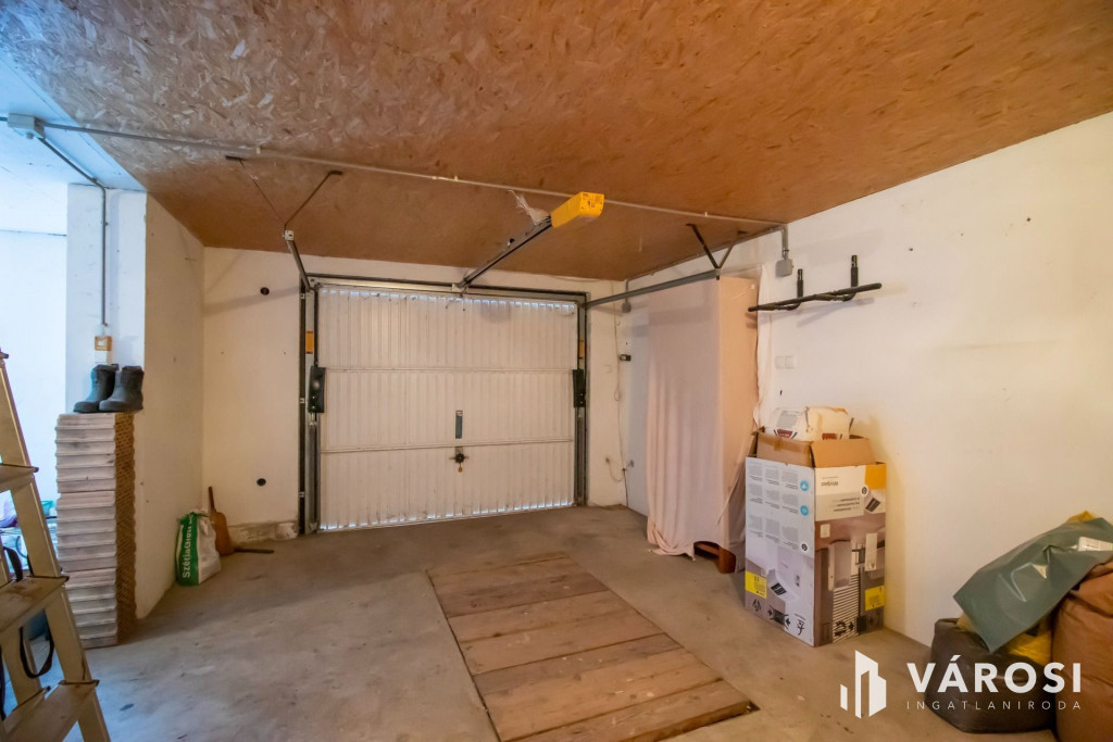 Parkolás motoros ajtóval ellátott garázsban és az utcán is lehetséges, de természetesen a tolókapun keresztül megközelíthető udvaron is van bőven hely az autó tárolására. A zárt, magas kerítés biztosítja, hogy az utcáról ne lehessen az udvarba belátni. Van még hely háziállatoknak, illetve rendelkezésre áll egy kis veteményeskert is.