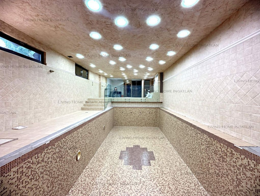 Pinceszint: beltéri medence mellékhelyiséggel, mosókonyha, gépészeti helyiség, tárolók.