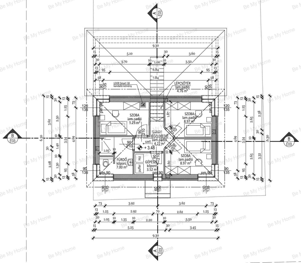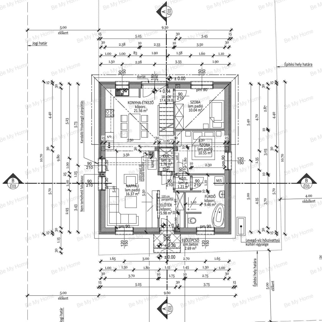 150nm-es a családiház nappali + 3 hálószoba + 2 fürdőszoba + terasz.