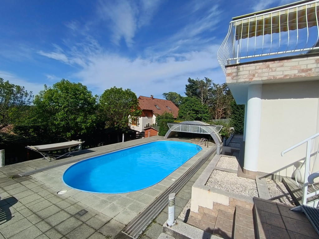A gondozott kertben a 10x4 méteres, befedhető úszómedence, a napozásra alkalmas terek és a hangulatos, fedett sütögetőhely tökéletes helyszínt nyújtanak pihenéshez és baráti összejövetelekhez egyaránt.