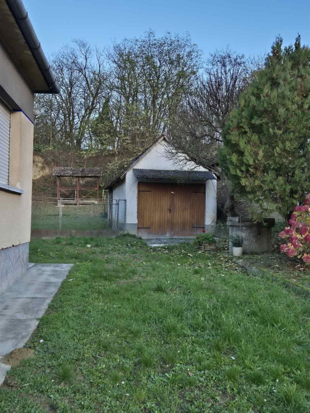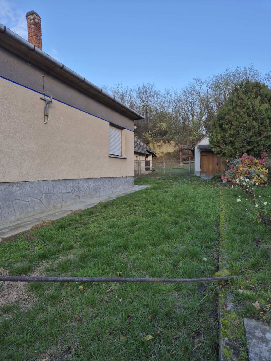Udvarában melléképületeket, garázst, és száraz pincét találunk.