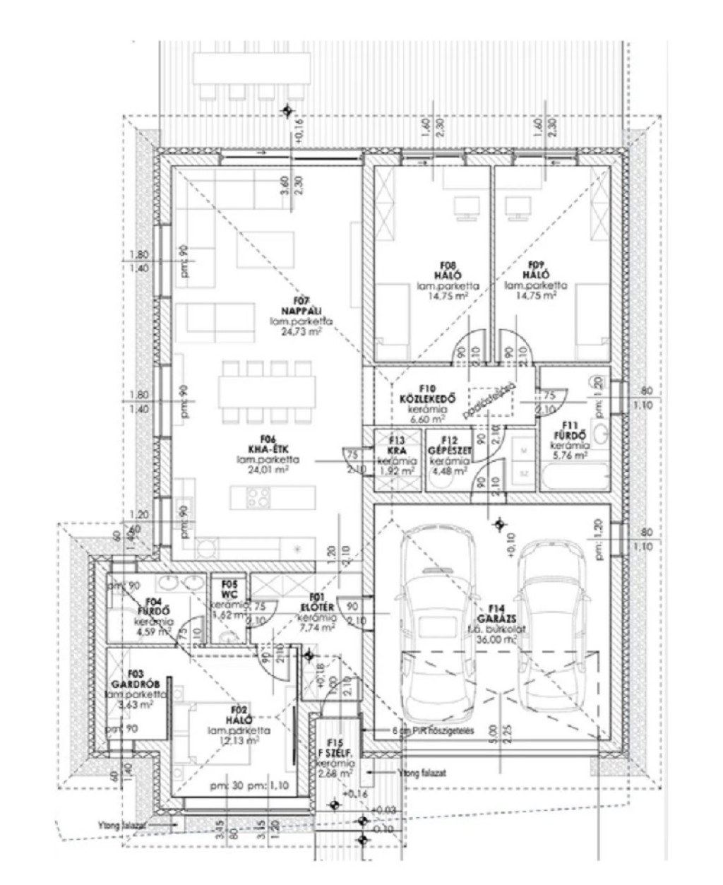 - Három hálószoba (14,75m2+14,75m2+12,13m2)