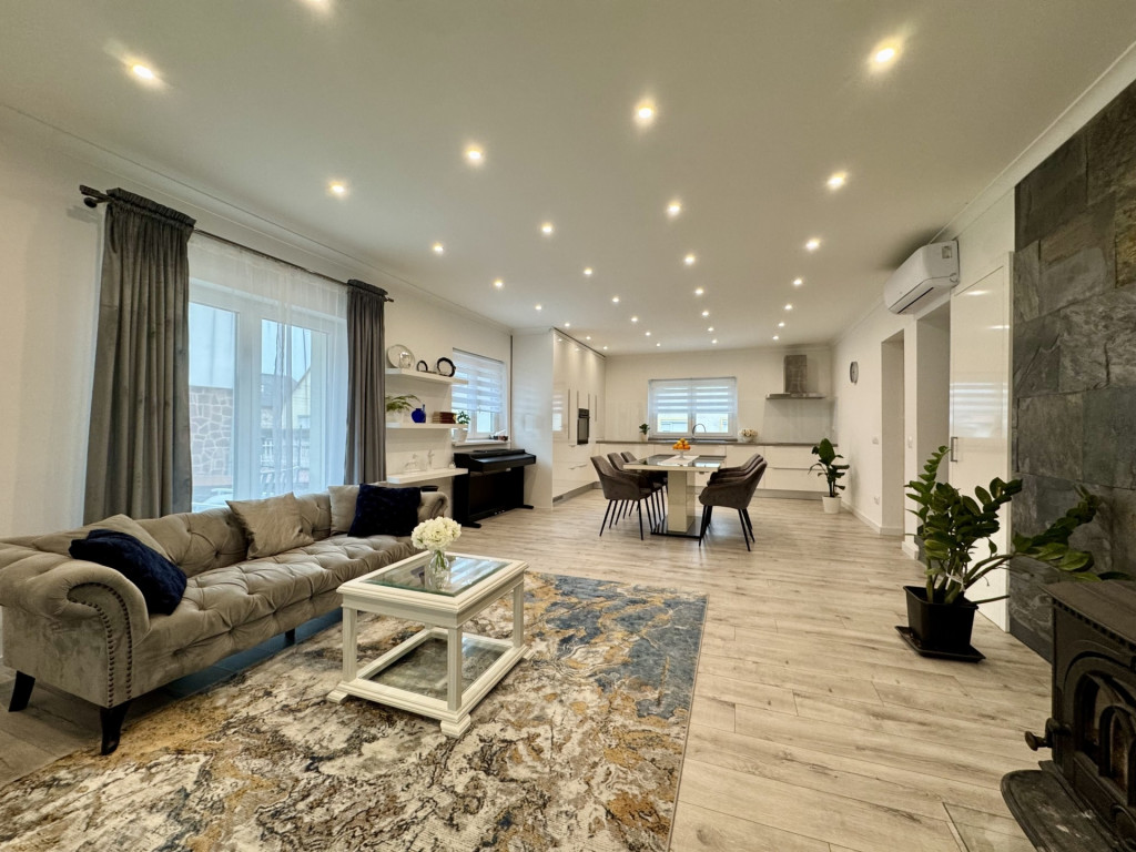 A fűtésről hangulatos kandalló és klímaberendezés gondoskodik, amely egész évben komfortos hőmérsékletet biztosít.