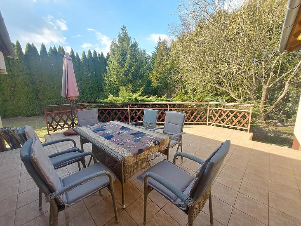 A szépen parkosított kert automata öntözőrendszerrel ellátott, a gazdagon beültetett örökzöldek pedig kizárják a szomszédos telkekről való belátást, megteremtve a nyugodt, zavartalan pihenés hangulatát.