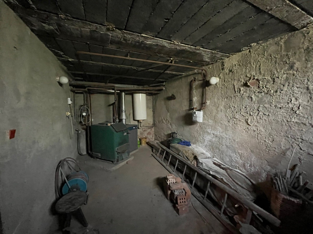 A pincében szintén található egy garázs, mellette kazánház. A ház fűtését egy darab gázkazán és egy darab vegyes tüzelésü kazánnal lehet megoldani jelenleg. A keleti tájolású előkertből és garázsból léphetünk be a ház előszobájába, illetve a nappaliból tudunk kimenni a déli tájolású fedett teraszra, valamint a hangulatos és szép kertbe.