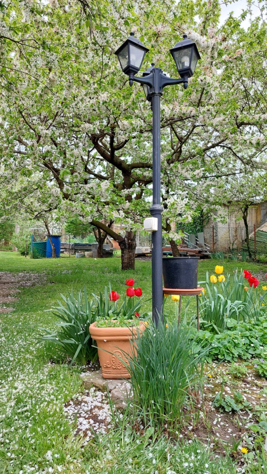 A kertben bőven termő szilva, alma, körte, őszibarack, naspolya és cseresznyefát találunk.