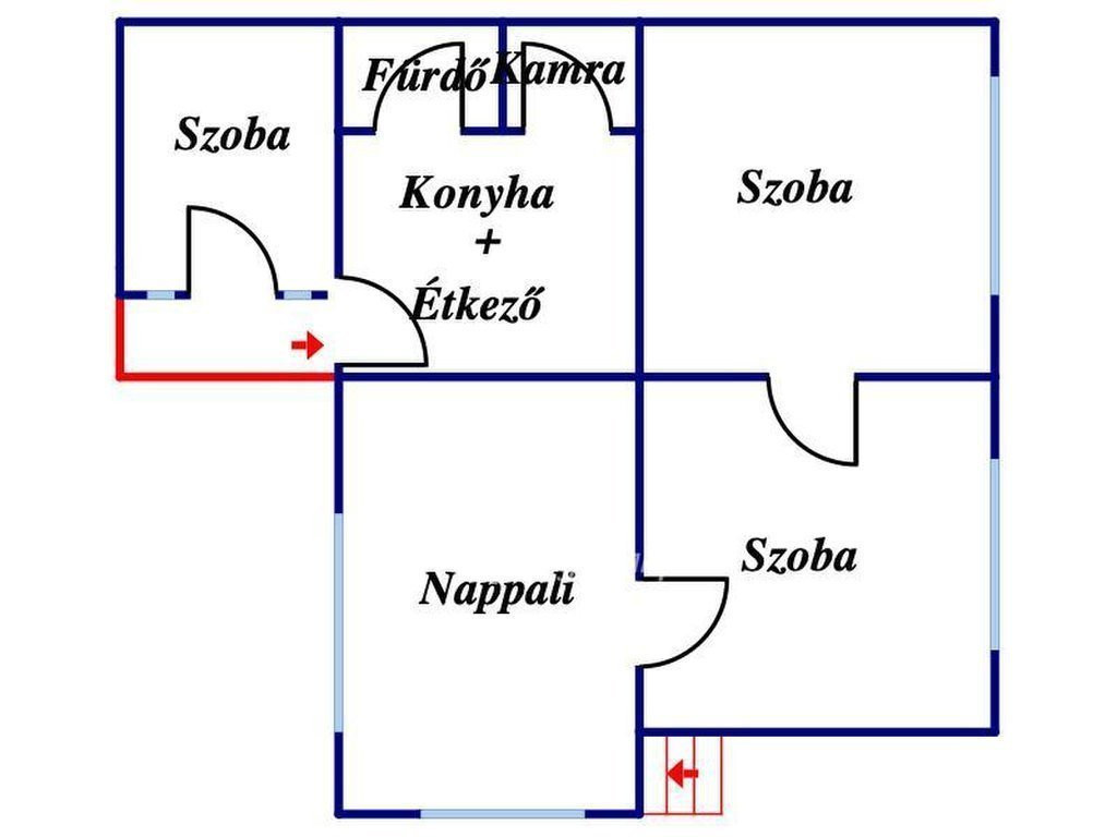 Helyiségek: 2 tágas szoba, konyha és étkező egyben, egy kis nappali, fürdőszoba, kamra, valamint egy különálló nyárikonyha.