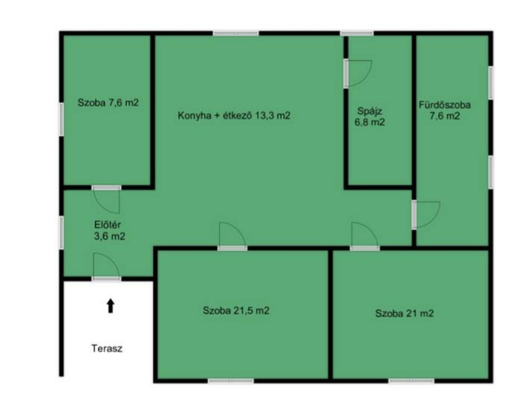 Az ingatlanban két nagy méretű szoba, egy kisebb háló vagy dolgozószoba, valamint egy világos, egybenyitott konyha-étkező kapott helyet. A fürdőszoba modern, igényes kialakítású, minden adott a kényelmes mindennapokhoz.