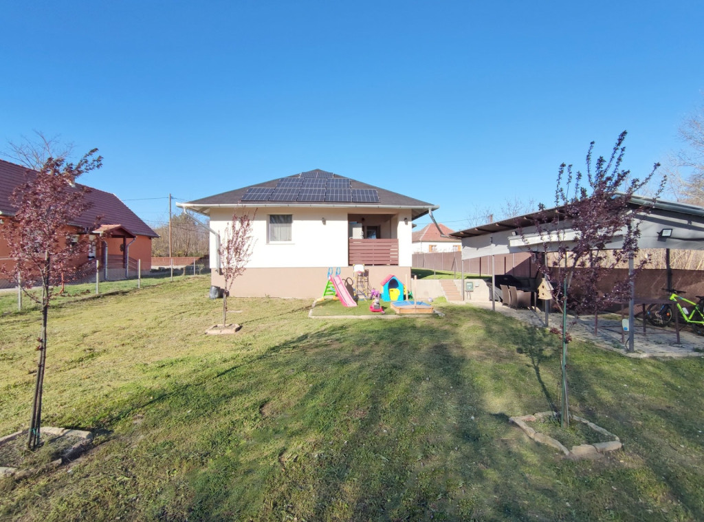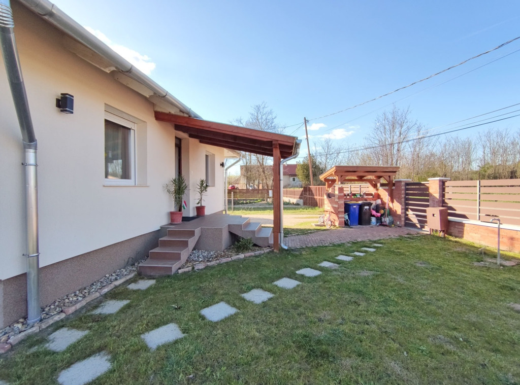 Megvételre kínálok Tápióság település központi részén, csendes, szinte forgalomtól mentes utcájában, a Kossuth Lajos utcában, családi házas övezetben, 1621 nm alapterületű önálló telken álló, 2008-ban épült, 2022-ben minden műszaki és esztétikai részletre kiterjedő korszerűsítéssel, modernizálással és felújítással, napelemes kiépítéssel, elektromos töltőállomással, egy 1 szintes, 2 egész szobás, 3 félszobás, 125 nm-es, kitűnő állapotú rugalmasan költözhető állapotú, körbejárható, esztétikusan berendezett családi házat, klímával, több gépkocsi számára nyílt beállási lehetőséggel, fedett szaletlivel, rendezett kerttel és hatalmas telekkel, amely FALUSI CSOK felvételére alkalmas.Az egész családi ház 2008-ban épült magasított betonalapozással, az előírások szerint megfelelő vízszigeteléssel, 30 cm-es falvastagsággal, 60 cm-es felosztású fagerendás födémszerkezettel, mely 2022-ben igényes felújítást kapott hőszigetelt födémmel, zsindelyes héjalással, alátét fóliával délkeleti fekvéssel, remek elosztású szobákkal, nagyon tágas, amerikai konyhás nappalival. A ház minden szempontból nagyon szép.