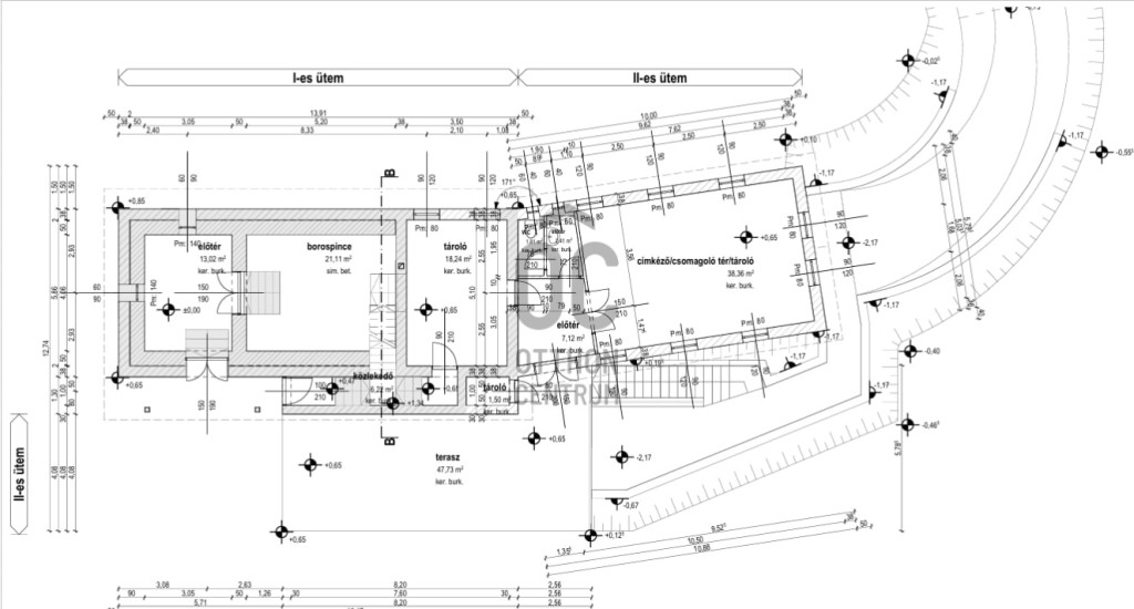 A pince 6 helyiségből áll körülbelül 150 négyzetméter. Az eredeti présház raktárnak használható, illetve itt található a napelem invertere, az 1800-as évek végén, vagy az 1900-as évek elején épített boltíves pincét megőriztük, körbeépítettük, hordóknak és palackoknak is tökéletes, szellőzése is rendben van. Palackos borok tárolására szolgáló helyiség a 2000-as években épült hozzá, majd 2019-ben épült egy 50 négyzetméteres tartálytér, mely összeköttetésben áll a kóstolótérrel-vendégfogadótérrel. A tartálytér 5,5KW-os, a kóstoló 3,5KW-os hűtő-fűtő klímával temperálható. Ehhez tartozik még egy tároló helyiség. Külső szigetelés itt 10cm XPS. A pince saját emésztőtartállyal rendelkezik. A ház porotherm téglából épült, a tetőtér beépített, mely nyílt cellás befújt szigetelést kapott. Homlokzat északi oldalán 15cm, a többi oldalon kitettségnek megfelelő vastagságú szigetelés található. A tetősík ablakok Velux márkájúak, külső hővédővel, belső árnyékolóval ellátottak. A tető héjazata creaton balance kerámia cserép. A tetőtéri ablakokból pazar kilátás nyílik a Tapolcai-medencére, Csobáncra és Hegyesdre.
