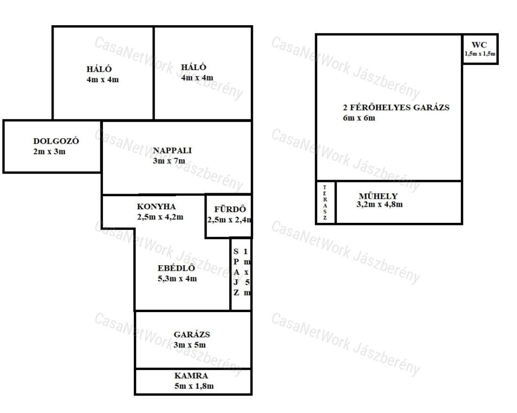 - Szobaszám 2 + 1 fél