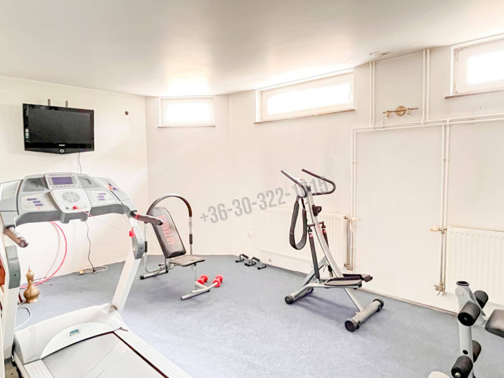 SZUTERÉN/ALAGSOR: edzőterem infraszaunával, ideális műhely vagy tároló, mosókonyha, zuhanyzó, külön WC, kazánház és konyha. Minden, amire egy többcélú tér kialakításához szükség lehet.