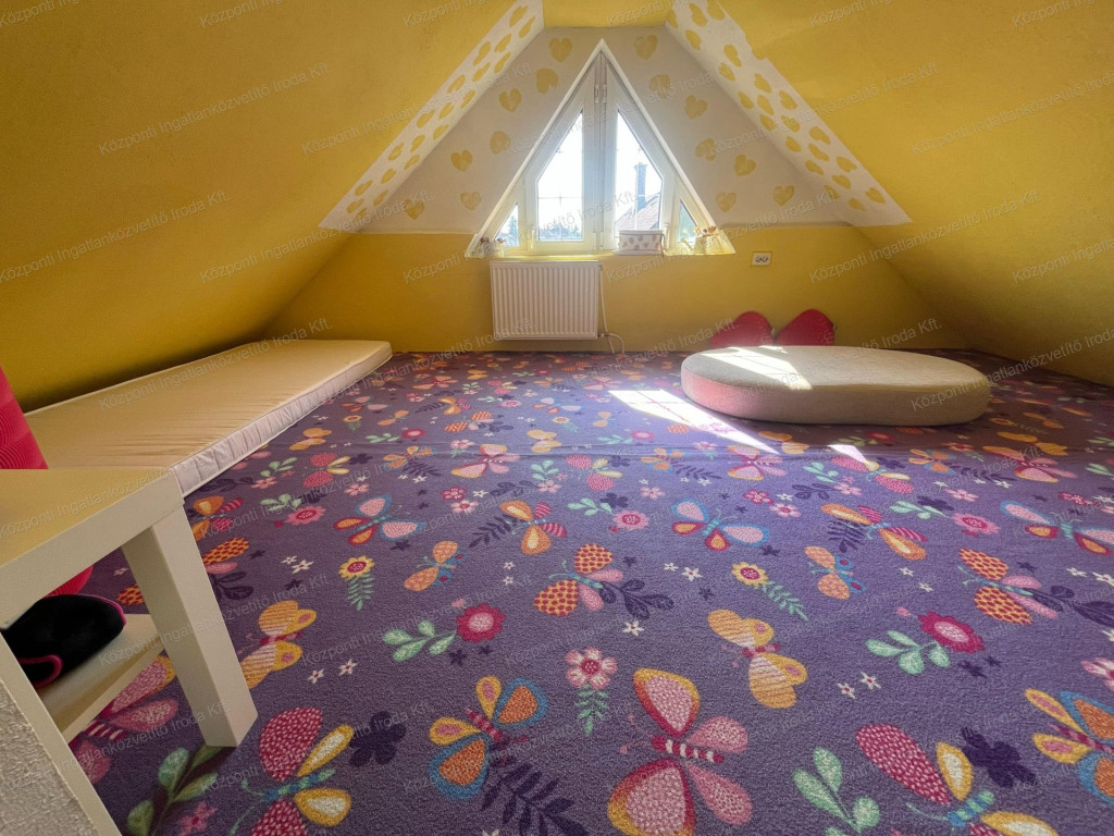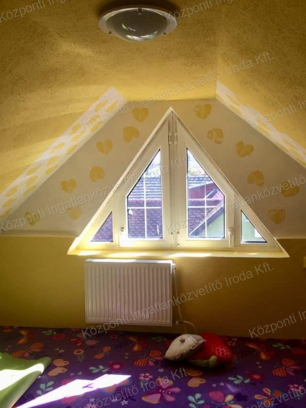 Az emeleti lakrész 70 m2-es, itt 2 szoba, galéria szoba, konyha, kádas fürdőszoba WC-vel, közlekedő, télikert és egy tetőtéri „manószoba” lett kialakítva. Az emeleten rendelkezésre áll egy 20 m2-es terület, aminek beépítésével növelhető az alapterület.