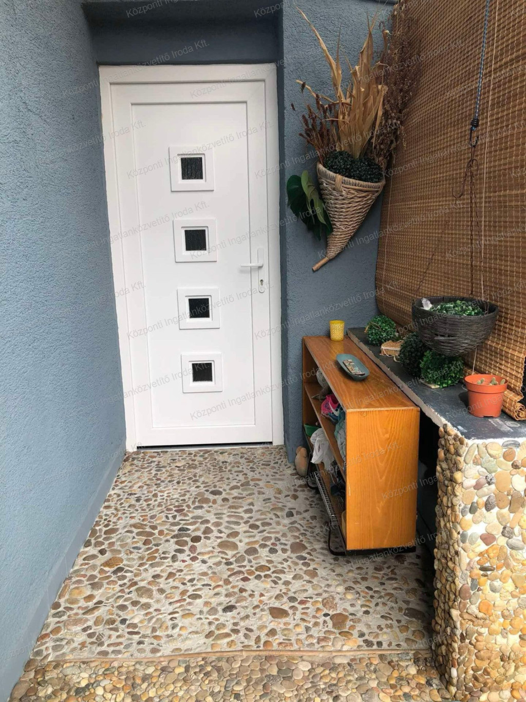 A ház előtt egy kis előkert található, hátsó kert sík, igény szerint alakítható, parkosítható. Locsolása gyűrűskútról megoldható.