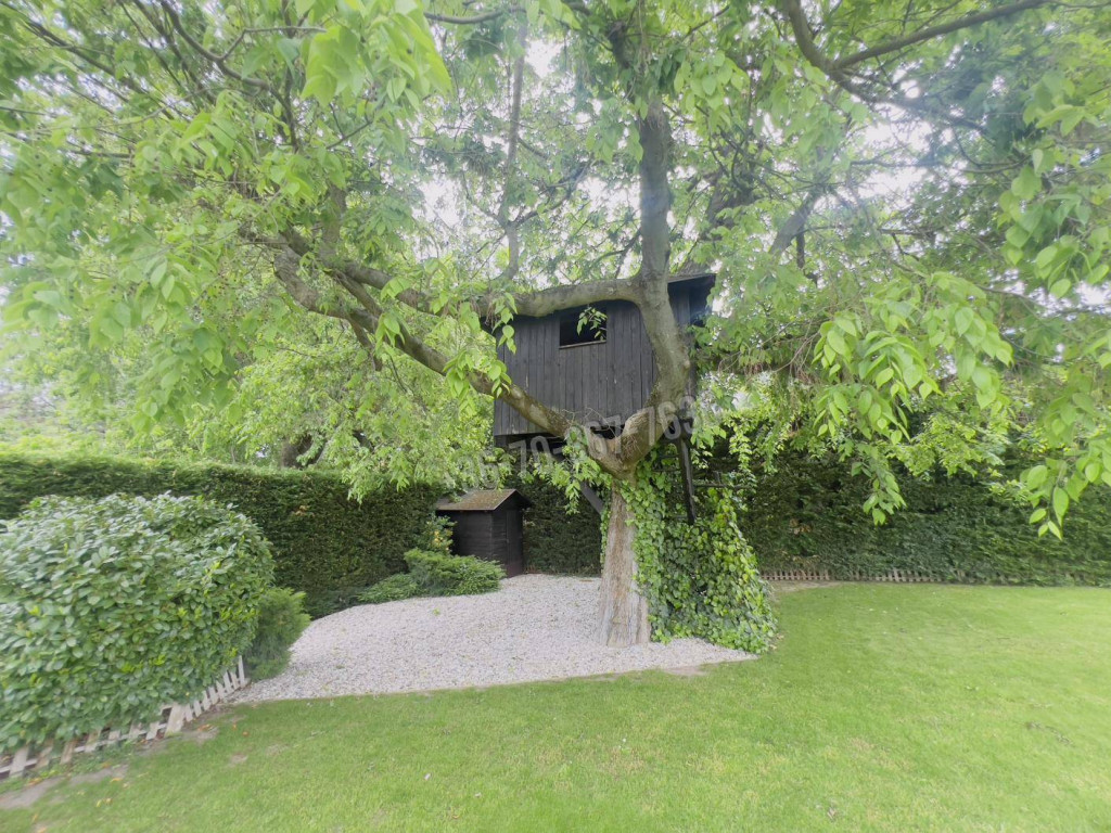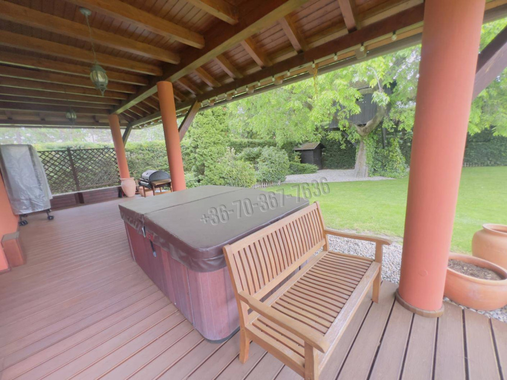 A házat gondosan ápolt, parkosított kert öleli körbe, melynek végében egy igazi gyerekkuckó várja a legkisebbeket: egy fára épített, hangulatos házikó, ami minden kisgyermek álma.