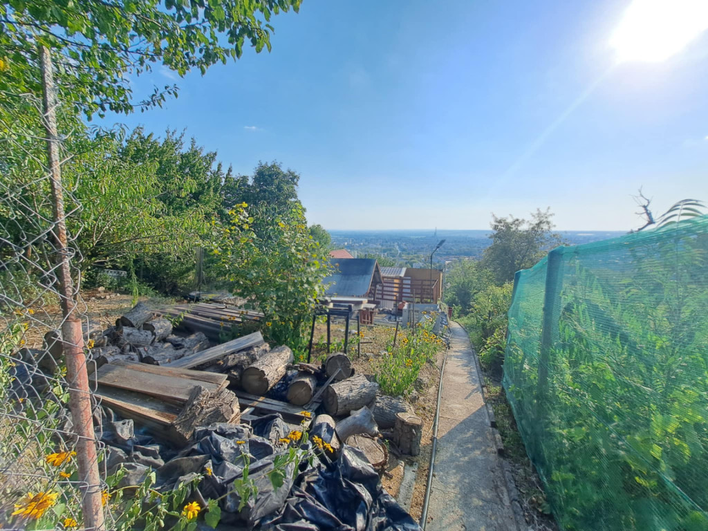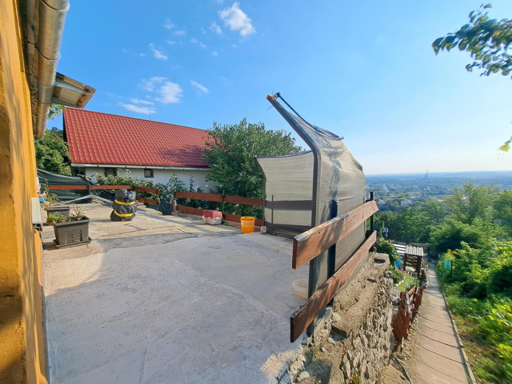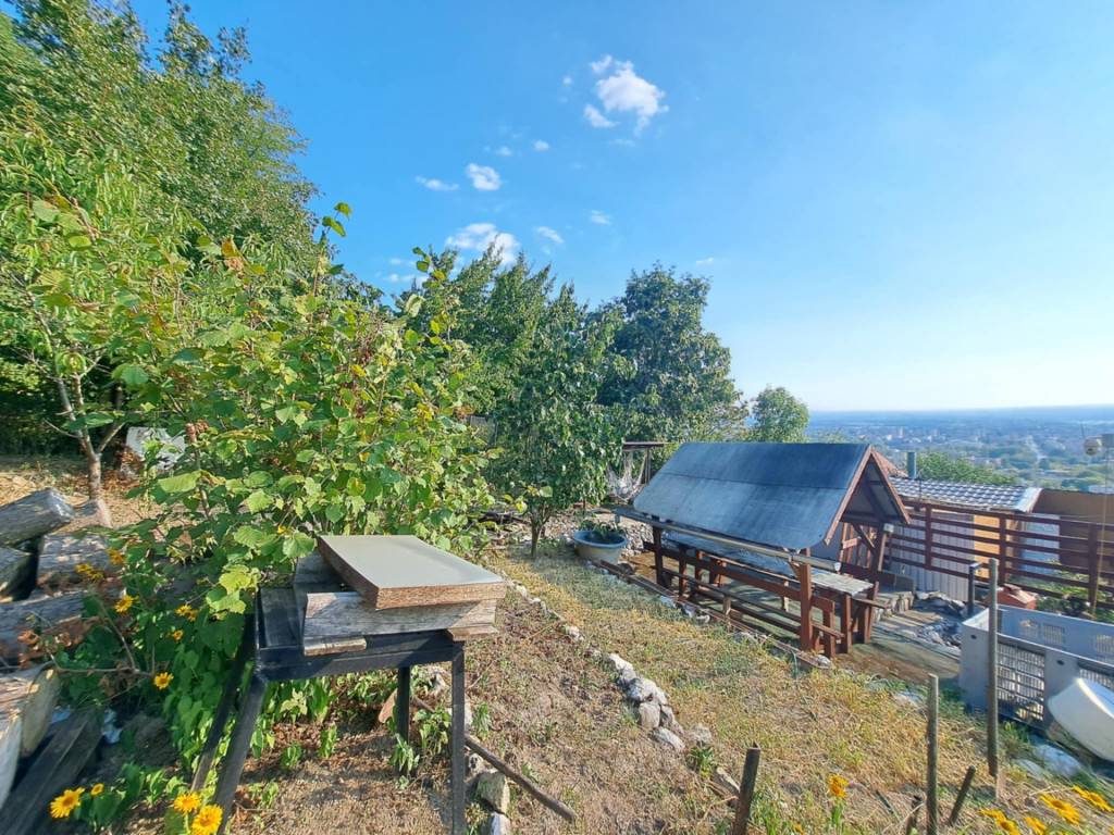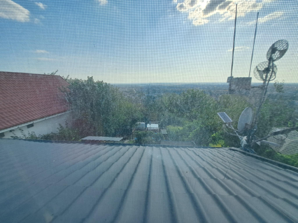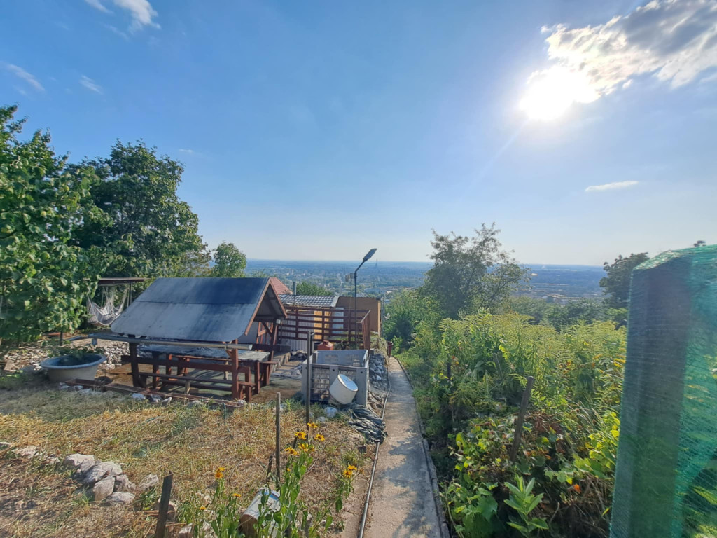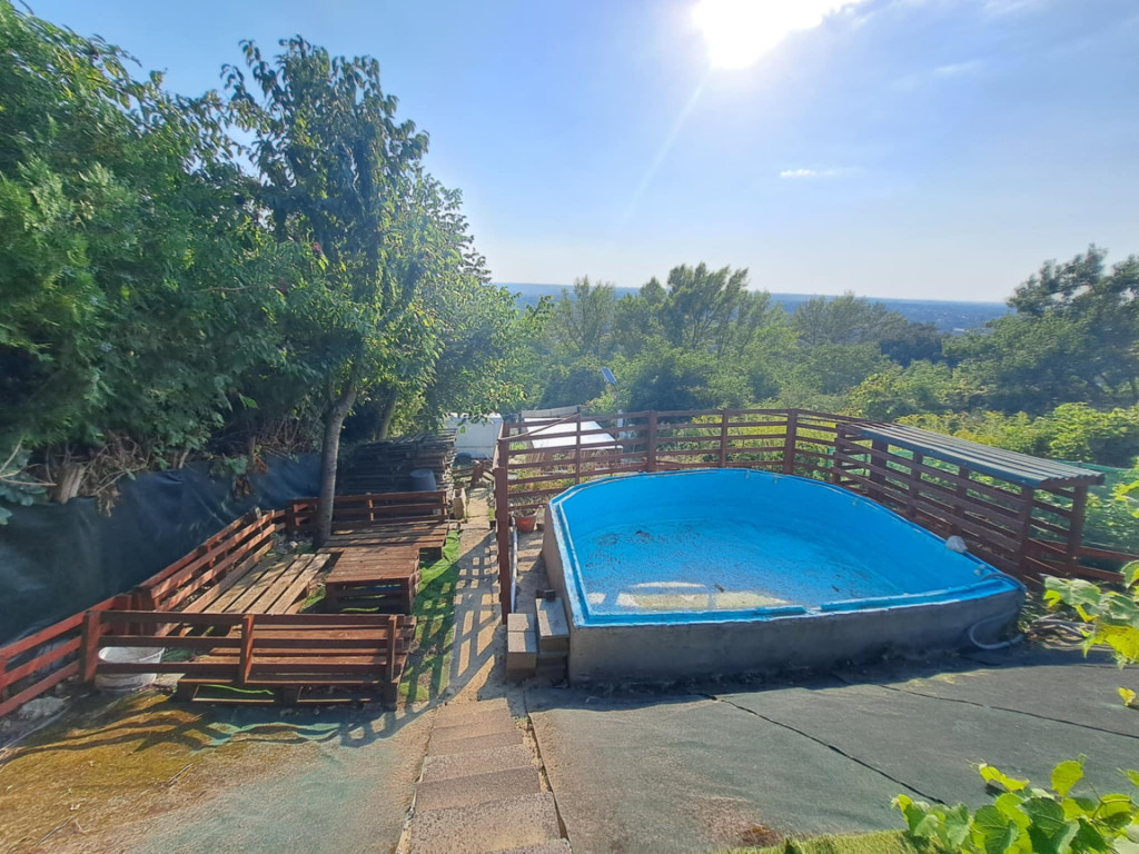 Az ingatlan két irányból is megközelíthető. Az egyik oldalon elektromos kapu is biztosítja a bejutást. A házhoz egy hatalmas terasz tartozik, csodás kilátást biztosítva a városra. A kert egy része parkosított, ahol medence, kerti kiülő, sütögető ad lehetőséget a pihenésre és feltöltődésre, másik részét veteményes, magaságyások, gyümölcsfák, számtalan virág és növény díszíti.