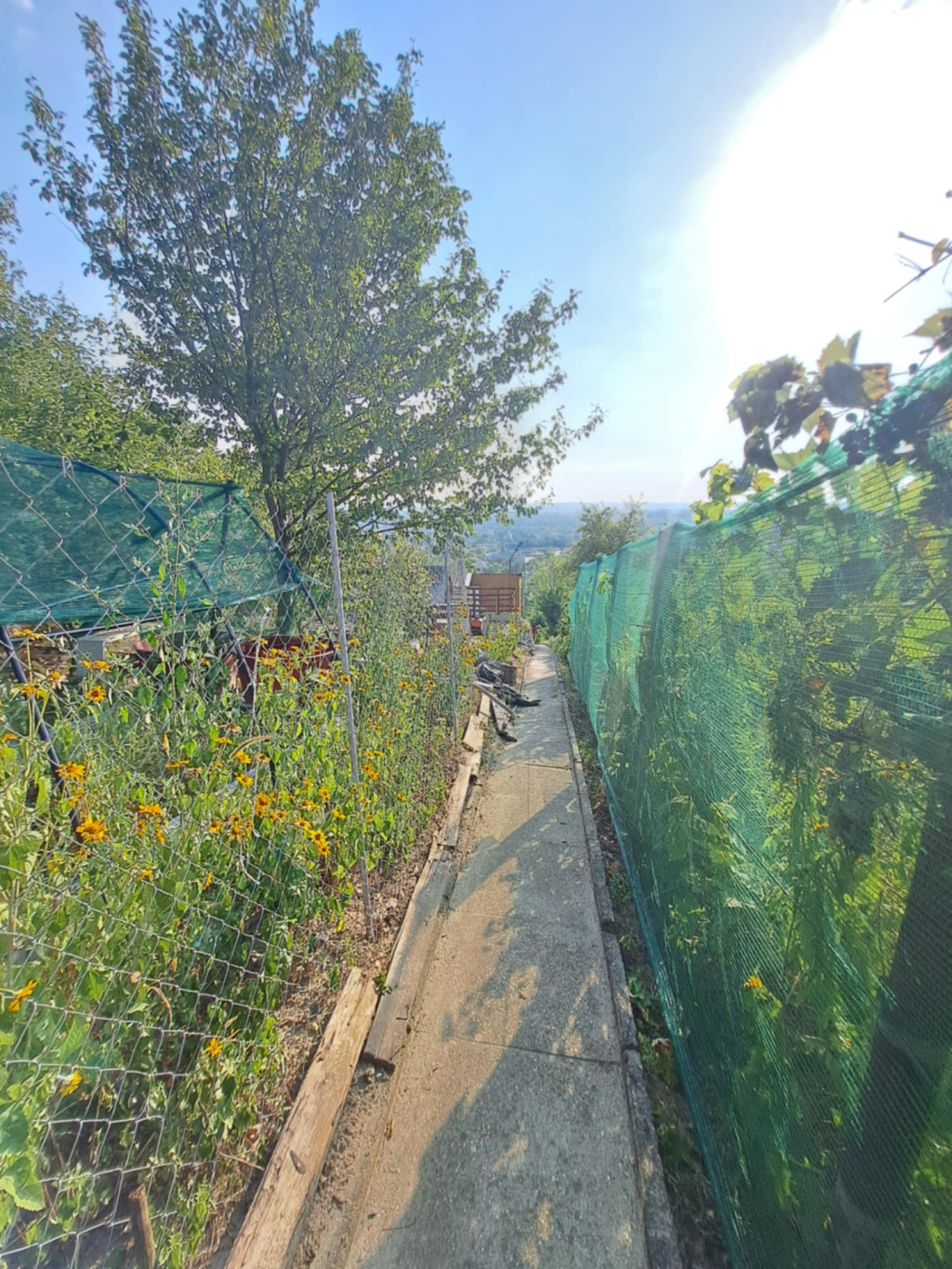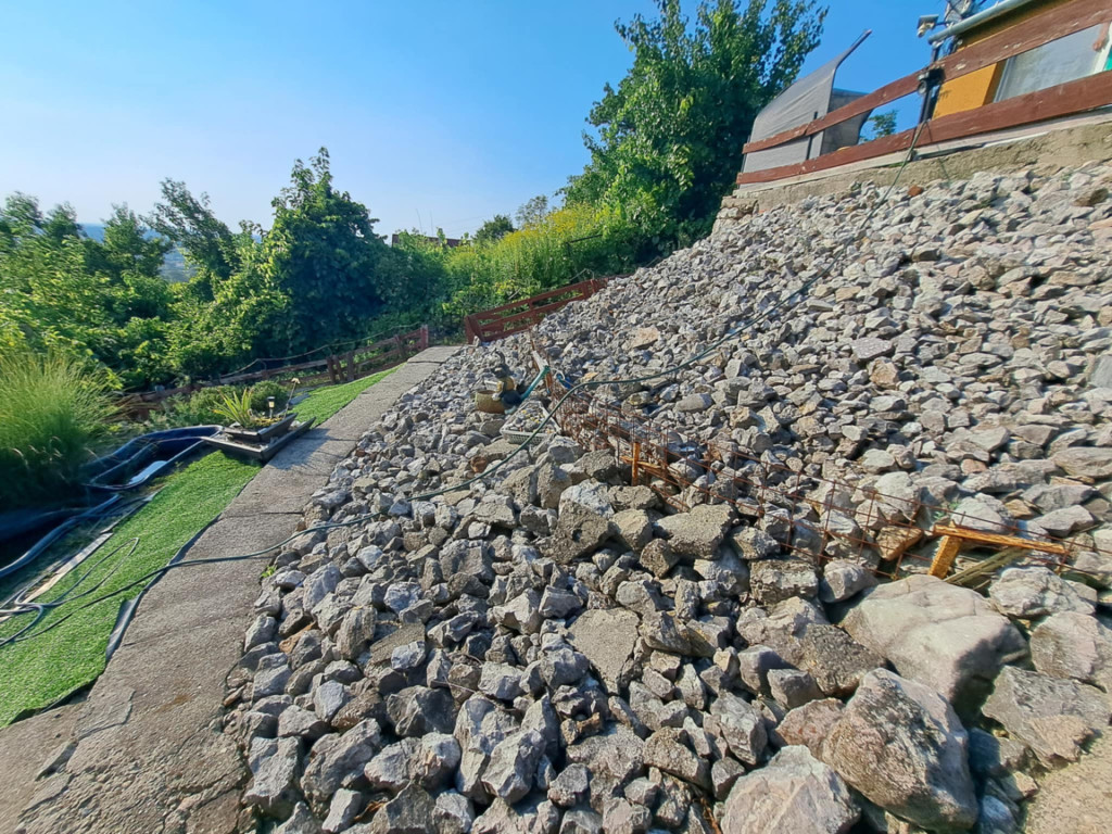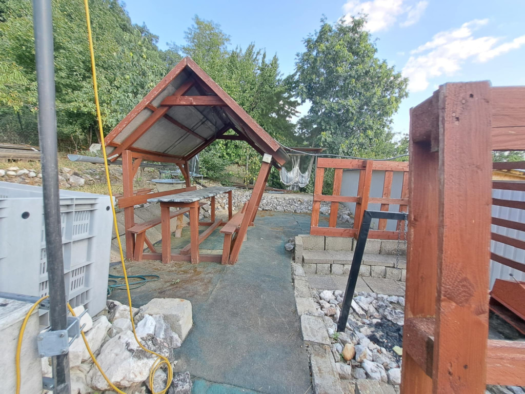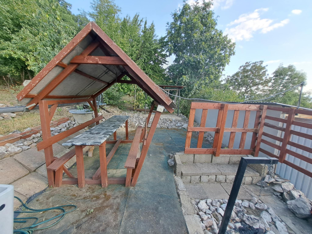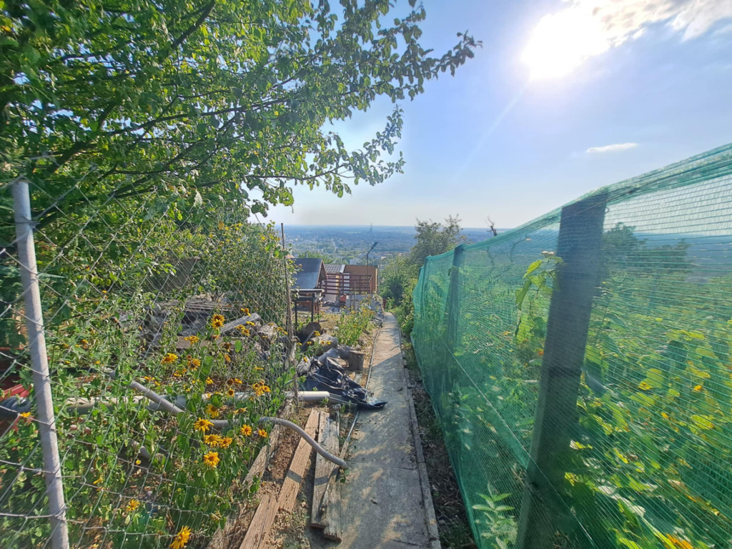 Az ingatlan két irányból is megközelíthető. Az egyik oldalon elektromos kapu is biztosítja a bejutást. A házhoz egy hatalmas terasz tartozik, csodás kilátást biztosítva a városra. A kert egy része parkosított, ahol medence, kerti kiülő, sütögető ad lehetőséget a pihenésre és feltöltődésre, másik részét veteményes, magaságyások, gyümölcsfák, számtalan virág és növény díszíti.