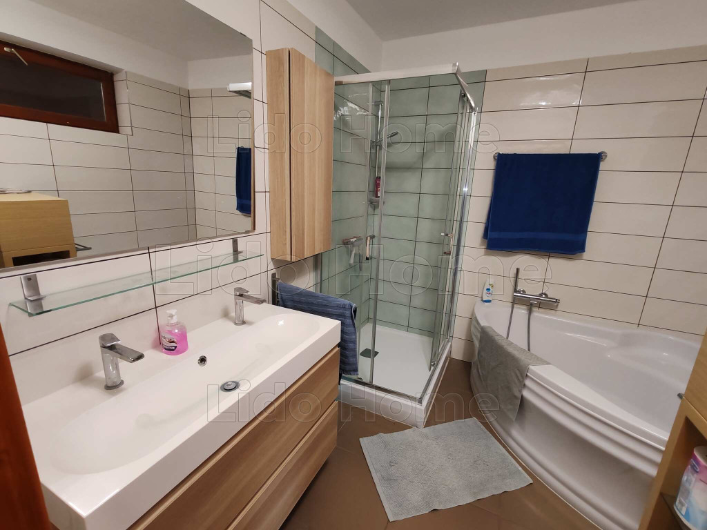 -Tetőtér: 3 tágas szoba, kádas-zuhanyzós fürdőszoba, fedett terasz
