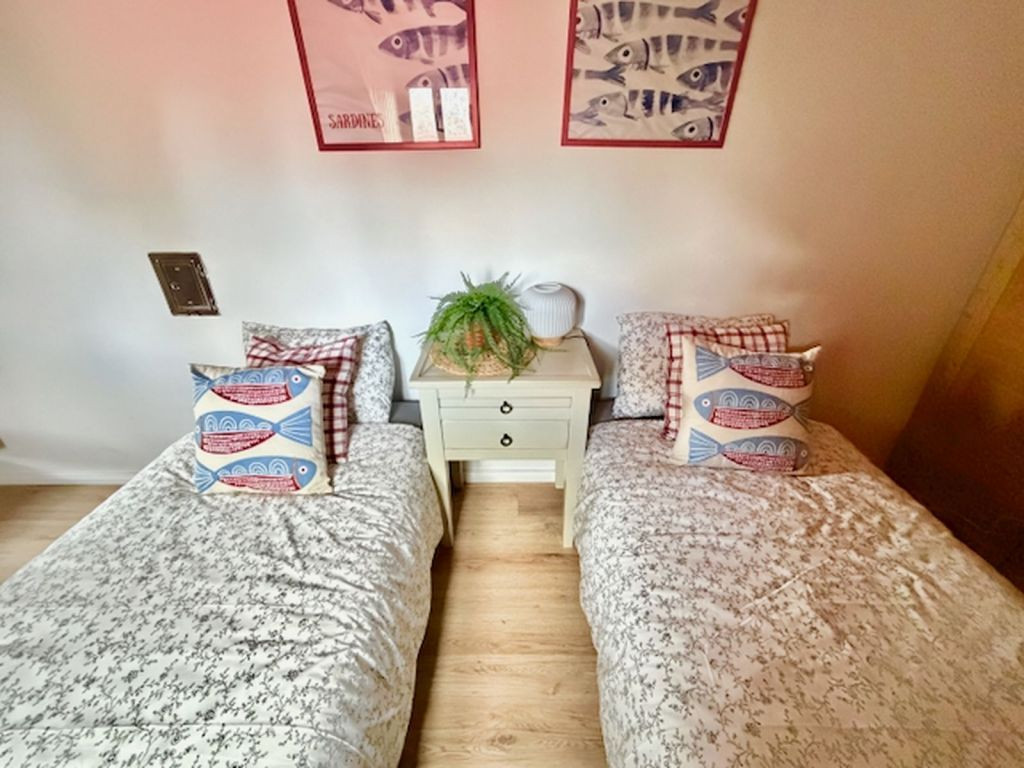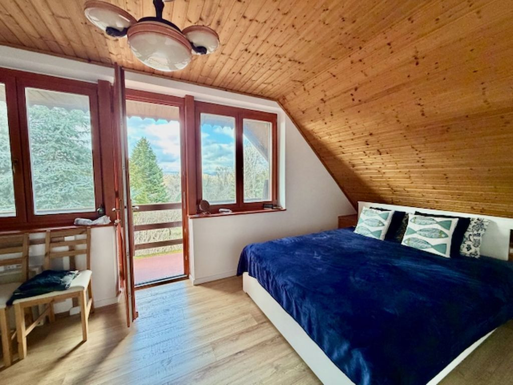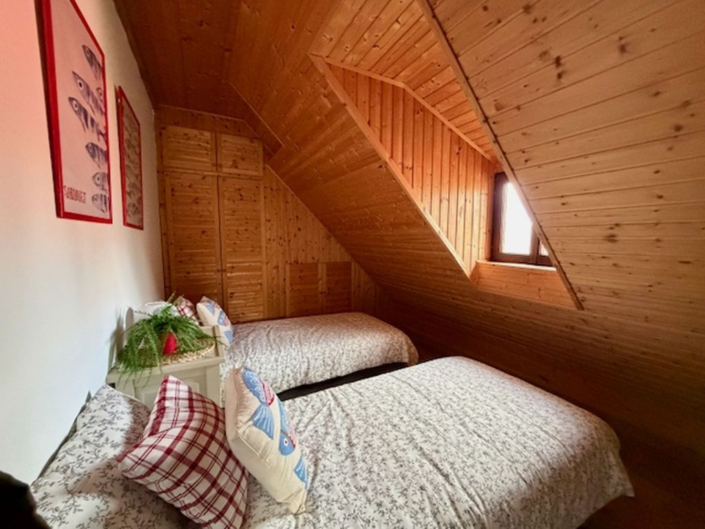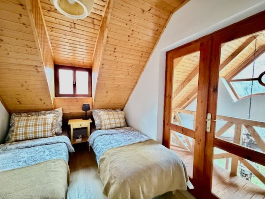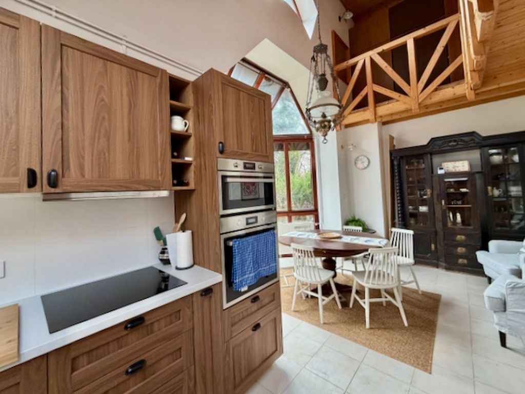 A földszint és a beépített tetőtér praktikus, jól szeparált élettereket biztosít. A nappali hangsúlyos belmagasságát a felső szint intimebb hálóterei ellensúlyozzák, így az elrendezés arányos és jól élhető. A fürdőszoba igényesen felújított, modern, visszafogott kialakítású. A nappalival egy légtérben kialakított konyha jól használható, praktikus elrendezésű, beépített gépekkel.