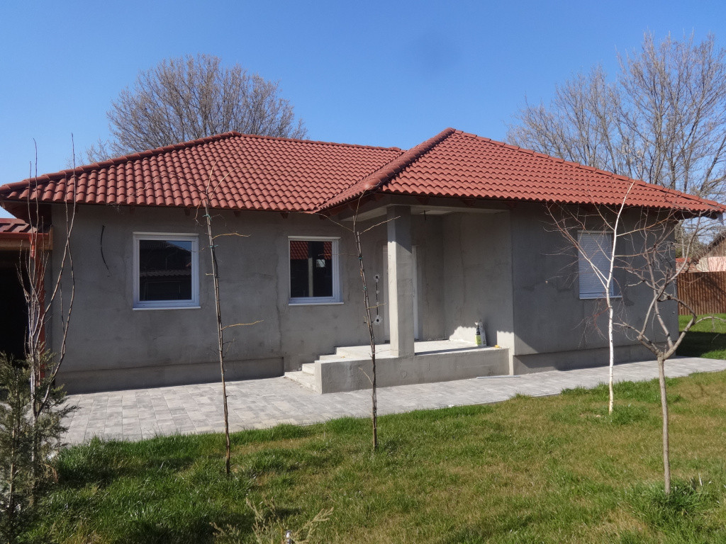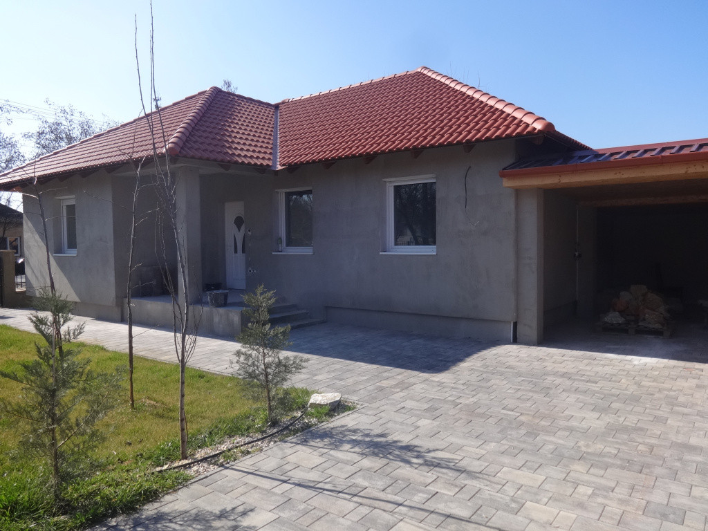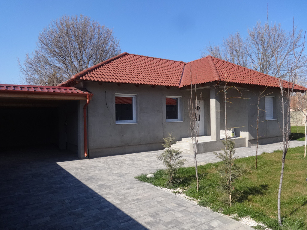 Kiváló befektetési lehetőség Tiszakécskén a Városközpontban! Újépítésű, kiváló elrendezésű, élhető, amerikai konyhás nappali+2 különnyíló hálószoba, fürdőszoba és külön WC elrendezésű 75 mn-es családi ház, kellemes 500 m2-es telken ELADÓ!A hamarosan befejezésre kerülő családi ház B30-as falazóblokkból épült, 15 cm-es nikecell homlokzati szigeteléssel ellátott. A födém 25-es kőzetgyapot szigeteléssel készült, az alap vasbeton sávalap, 30 cm-es pórusbeton falazóelem vasalt betonkoszorú kialakítással! Az ácsolt tetőszerkezetre ( rágcsáló és gomba elleni védelemmel ellátva)betoncserép kerül, esztétikus ereszcsatornával. A műanyag nyílászárók 3 rétegű üveggel, szúnyoghálóval és redőnnyel felszereltek. A helyiségek trendi kerámia lap burkolatot kaptak, míg a hálószobákba kiváló minőségű laminált padlóburkolatot tettek.A fűtést és melegvíz ellátást hőszivattyú biztosítja, előbbi padlófűtés, míg az utóbbi 200 literes HMV tartály segítségével.Igény esetén akár 300 literes is beszerelhető. Természetesen fűtő-hűtő klímák (3db) is rendelkezésre állnak! Elektromosság tekintetében helyiségenként 5 dugalj kerül kiállásra.