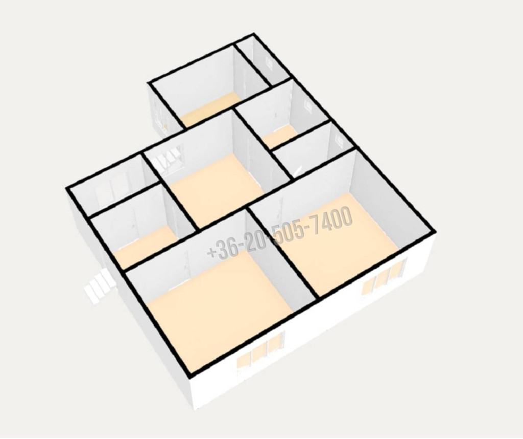 Helyiségek: 2 és fél szoba, konyha, fürdőszoba, közlekedő, két kamra