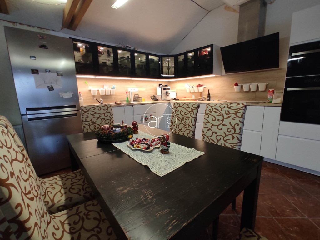 A gyönyörű, modern konyha minden főzés kedvelő álma, mely az amerikai konyhás kivitelezésnek köszönhetően a ház központi életterét jelenti tágas terekkel. A fürdőszoba és a WC külön helyiségben található, ami a mindennapi kényelmet szolgálja.