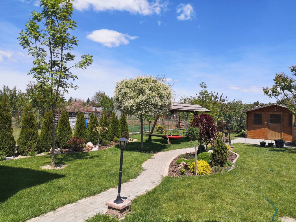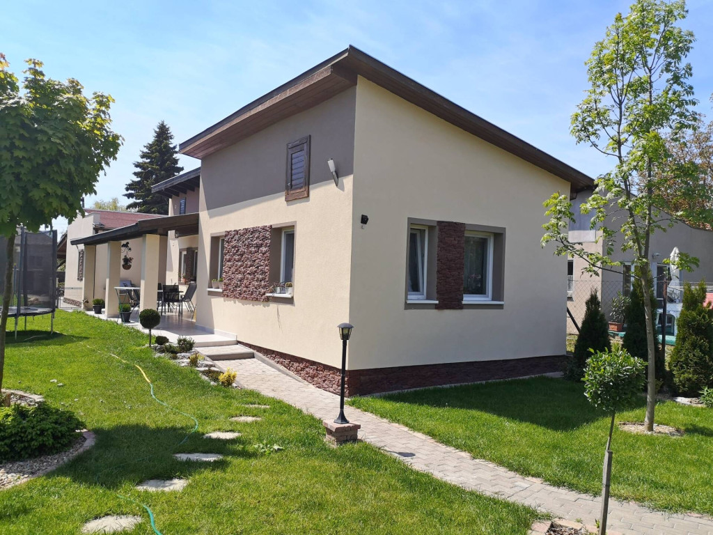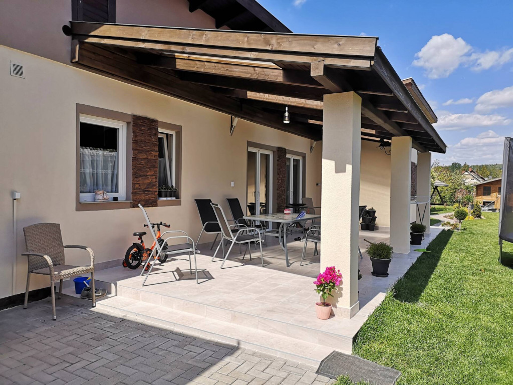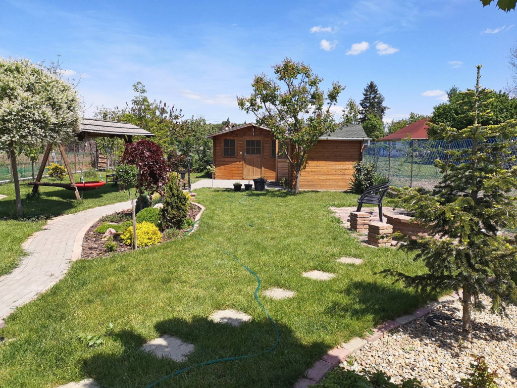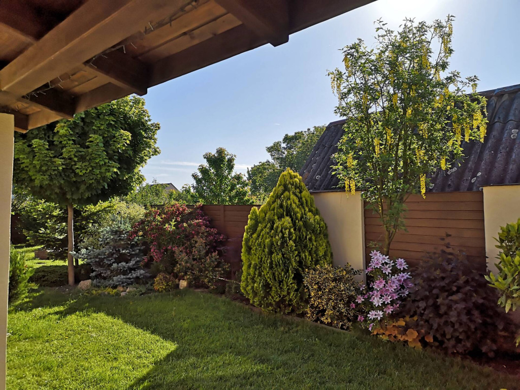 -Az udvaron a bejárati térkövezett terület, a kerti tároló, és gyerek játszótér, szalonnasütő mind a család kényelmét szolgálja.