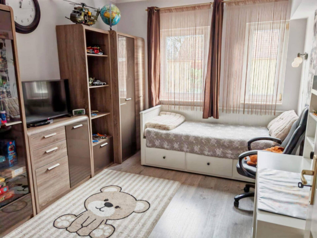 Az ingatlan csendes, nyugodt kertvárosi környezetben található, mégis közel a termálfürdőhöz és a városközponthoz. Minden szolgáltatás pár perc alatt elérhető a közelében.