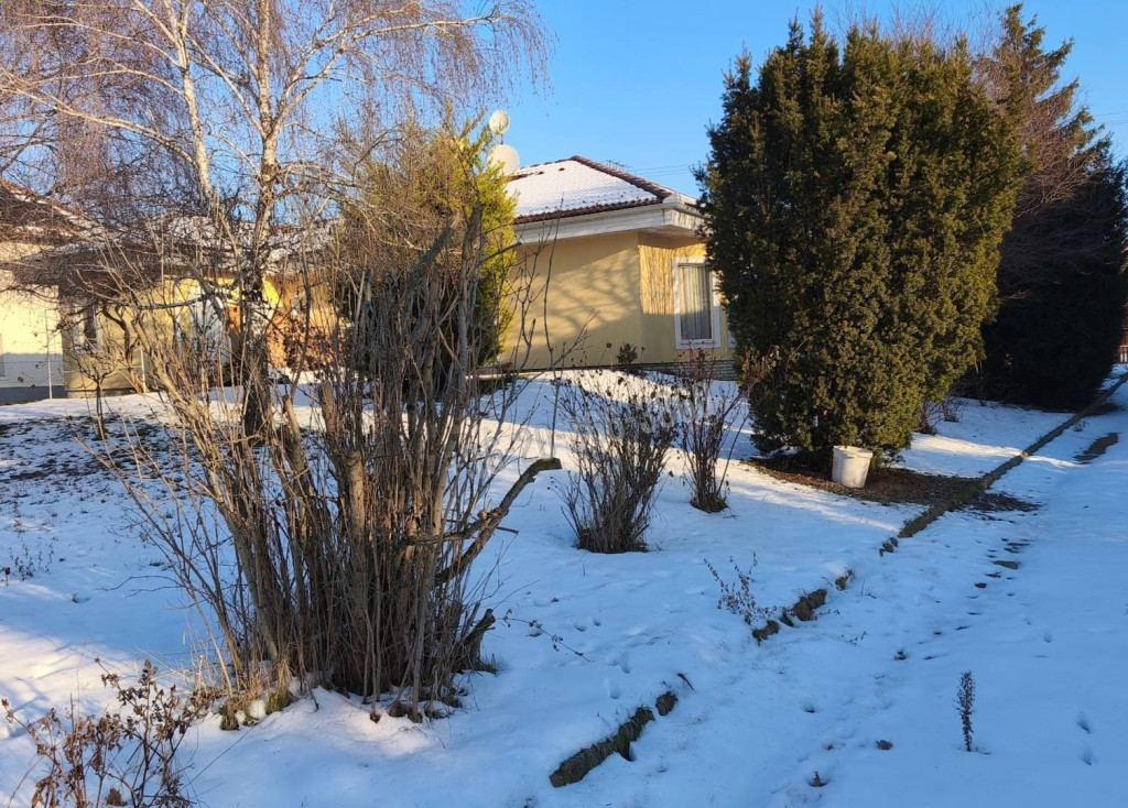 A FŐÉPÜLET egy cca bruttó 150 m2-es összközműves, egyszintes családi ház, a házzal egybe épített garázzsal, két terasszal. A ház nettó lakható belső hasznos területe 94 m2.