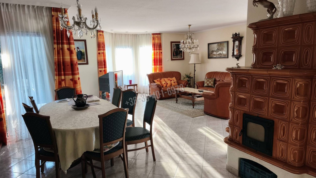 A nappaliban egy szép cserépkályha van, ami nemcsak dekoratív, de nagy fűtőteljesítménye miatt nemcsak az átmeneti időszakokban, de akár télen is szinte kifűti az egész házat.