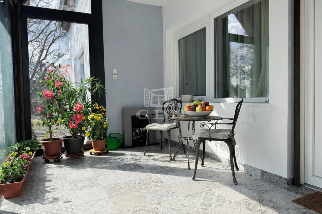 A tetőtéri fürdőszobát kibővítették és teljesen felújították. Az udvar felőli teraszt télikertté alakították, kiváló minőségű alumínium nyílászárók beépítésével és új padlóburkolat lerakásával.