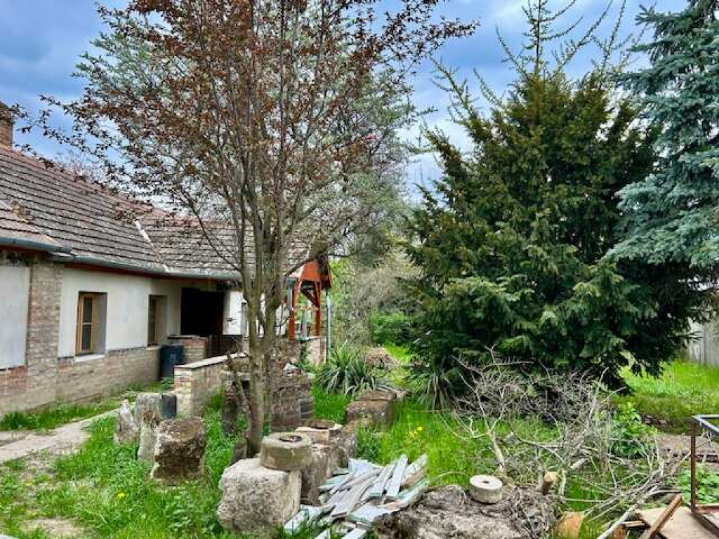 A ház 102 m2, udvaron fák, bokrok találhatóak. Autóval az udvaron lehet parkolni, de egy fedett beállót is van hely kialakítani.