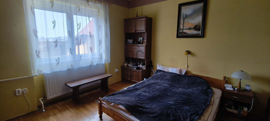 A lakórészben található 3 világos szoba, egy nagyméretű nappali étkező, fürdőszoba, konyha; a szuterénben egy tágas konyha-étkező, egy mosókonyha-kazánház és egy nagyméretű kamra helyiség.