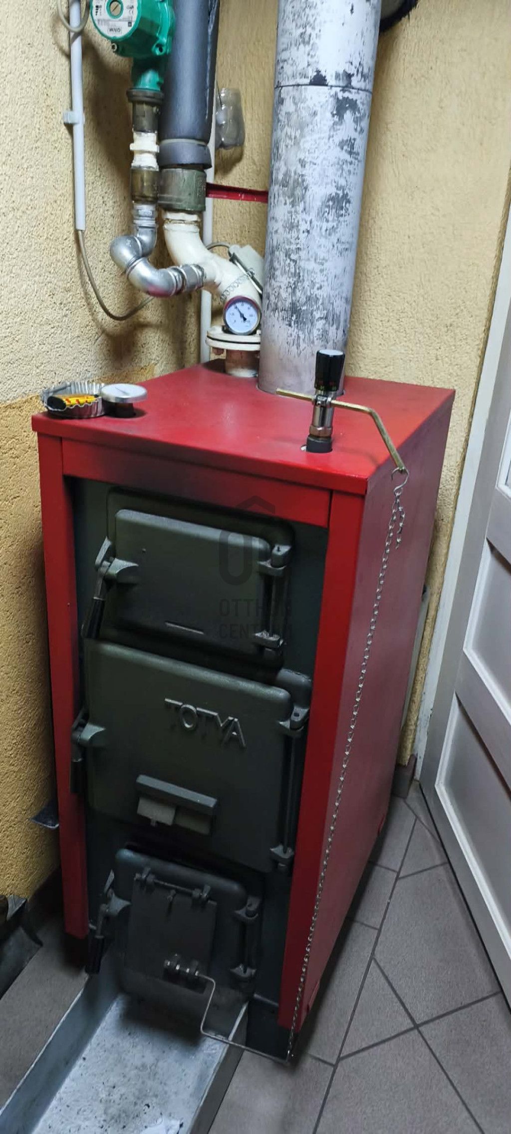 Fűtéséről egy 2,5 éves kombi kondenzációs gázkazán és egy újszerű vegyestüzelésű kazán (amely áramszünet esetén is üzemeltethető) gondoskodik, radiátoros hőleadókkal.