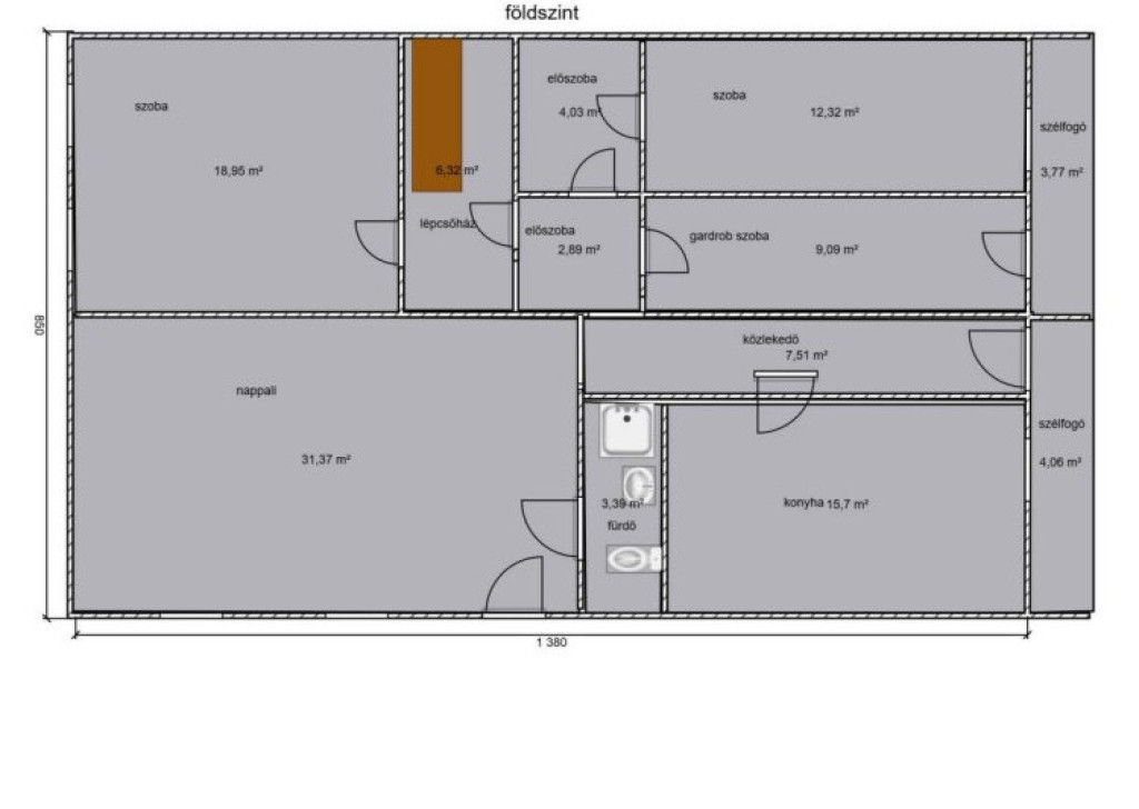 222 m² alapterület