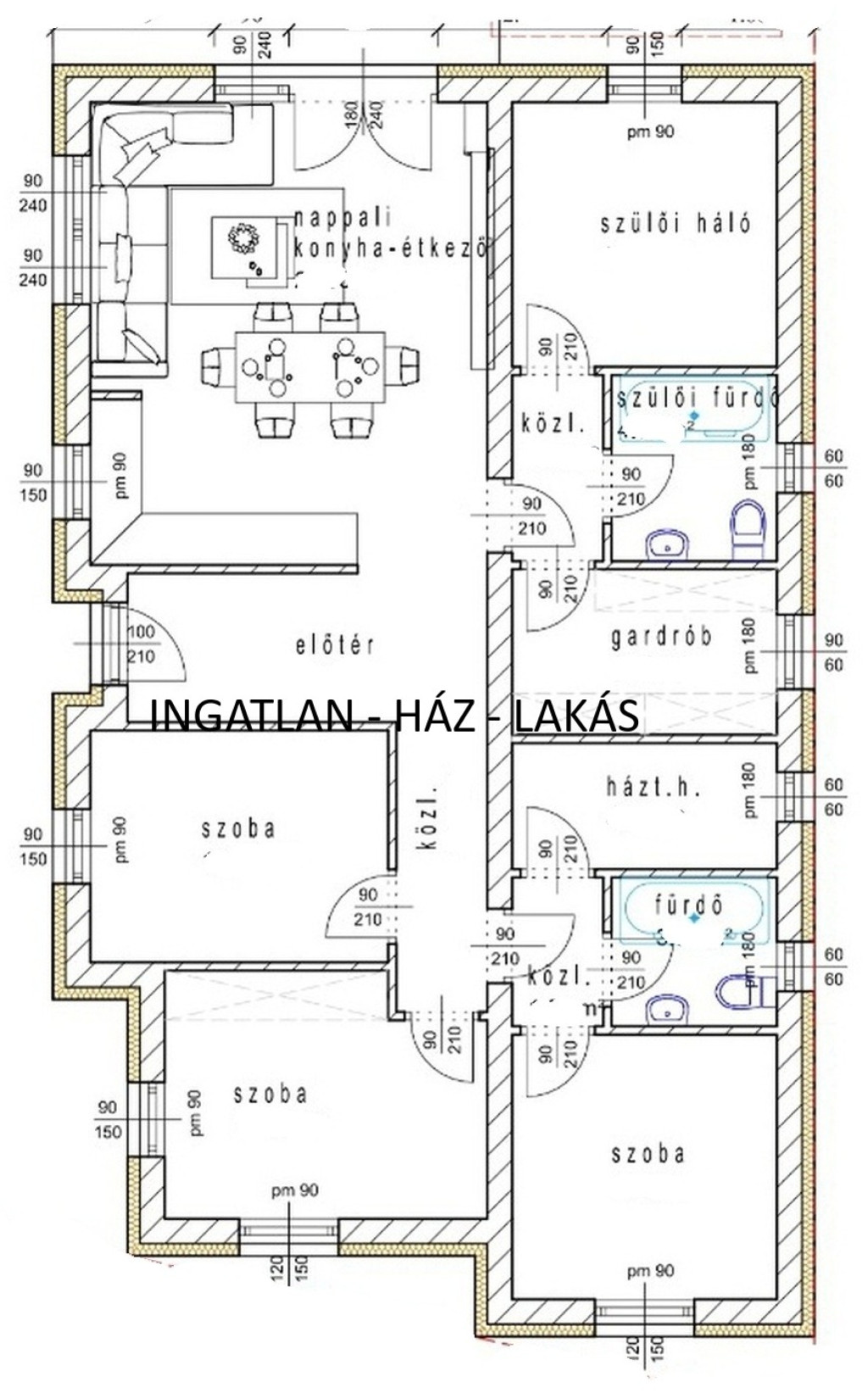 Az ingatlan falai 30 cm-es Porotherm NF téglából épülnek + 15 cm dryvit szigeteléssel.