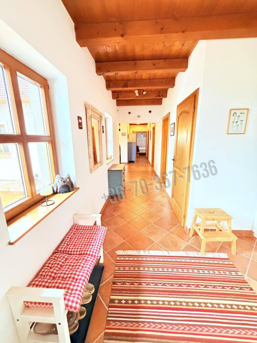 A ház belső tere egységesen tovább viszi a külső tradicionális karaktert, minden helyiségben látszó fafödémmel, természetes, meleg hatású fa felületekkel,így a modern kényelem és a hagyományos forma itt valódi értéket képvisel