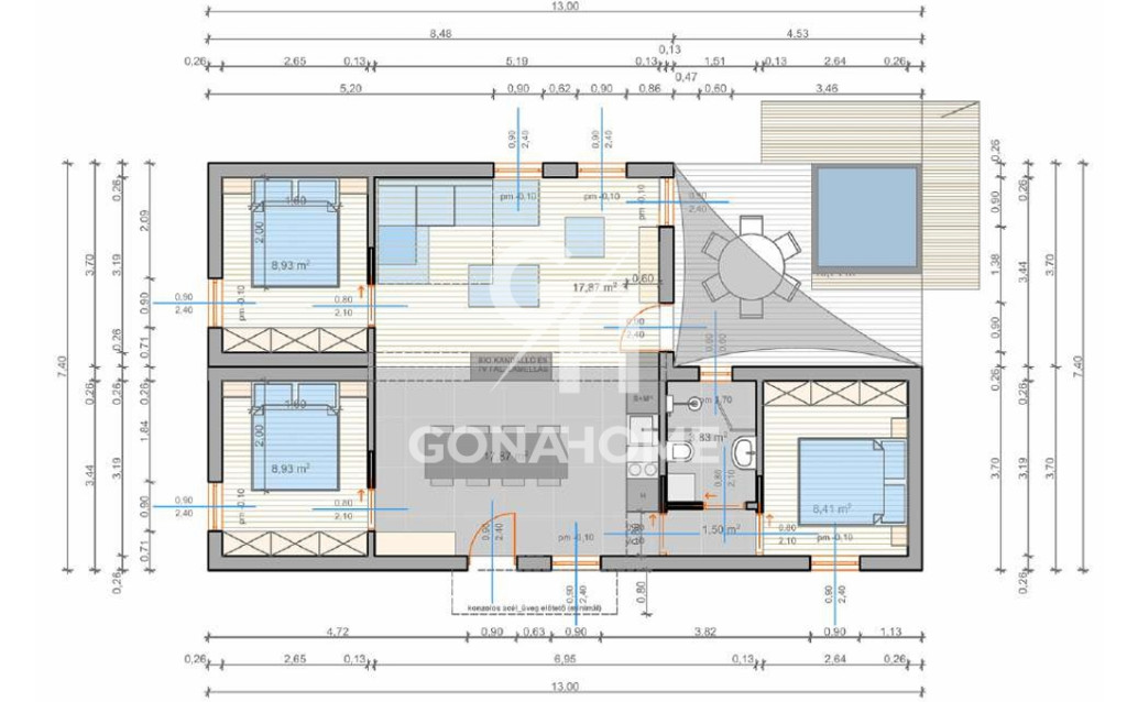 - A hirdetett modulház nettó alapterülete: 67,3 m2