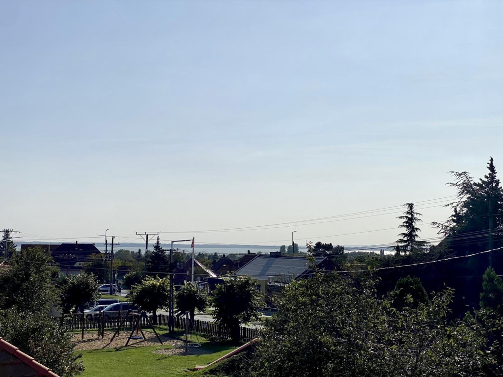 Az emeleti teraszokról a Balaton is látható.