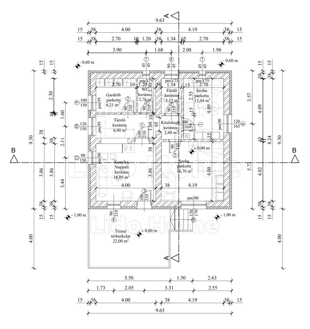 – 72 m² lakótér + 22 m² terasz.