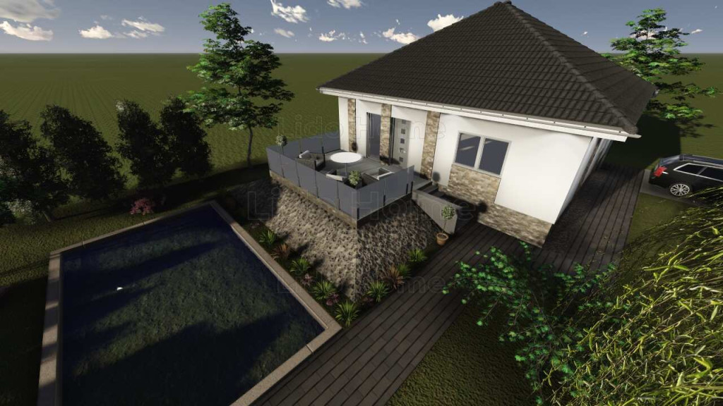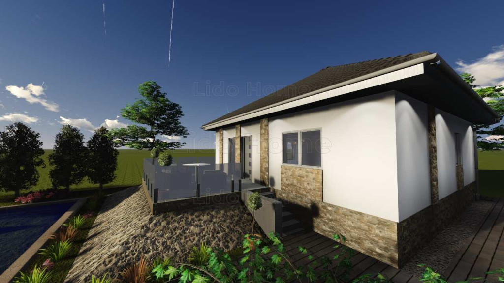 – Egyszintes kialakítás: amerikai konyhás nappali, 3 szoba, tároló, közlekedő, zuhanyzós fürdőszoba, külön WC, külső terasz.
