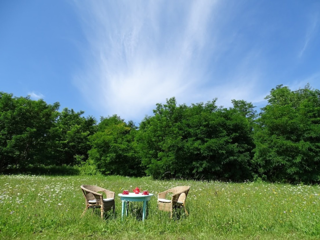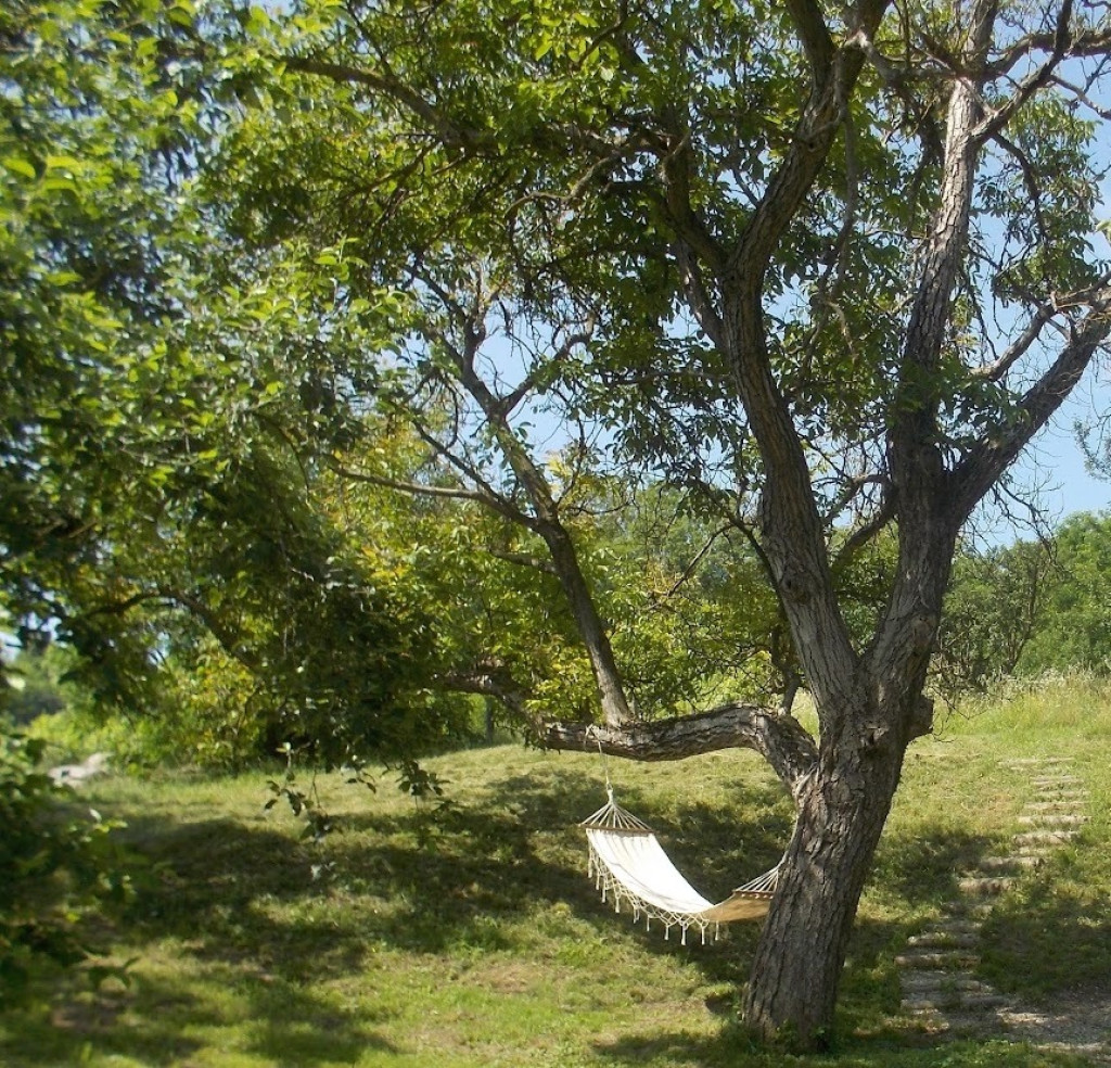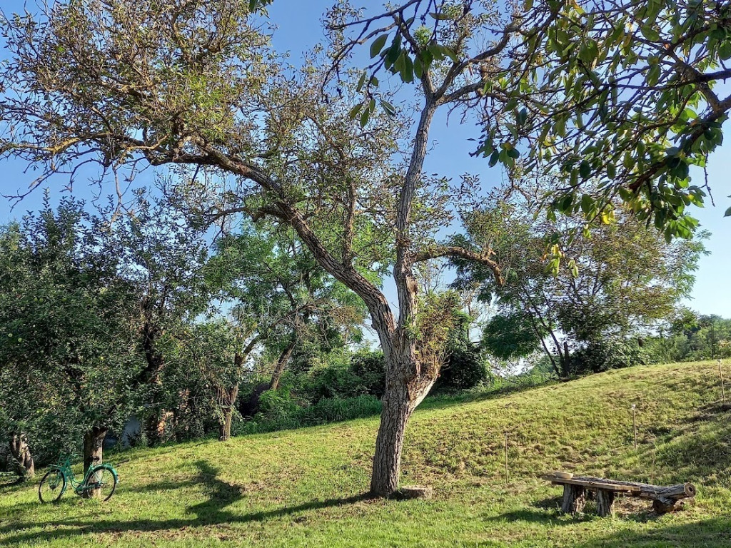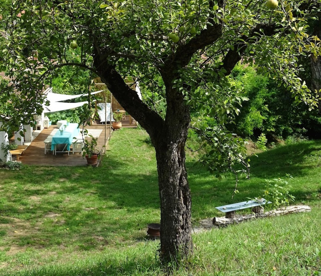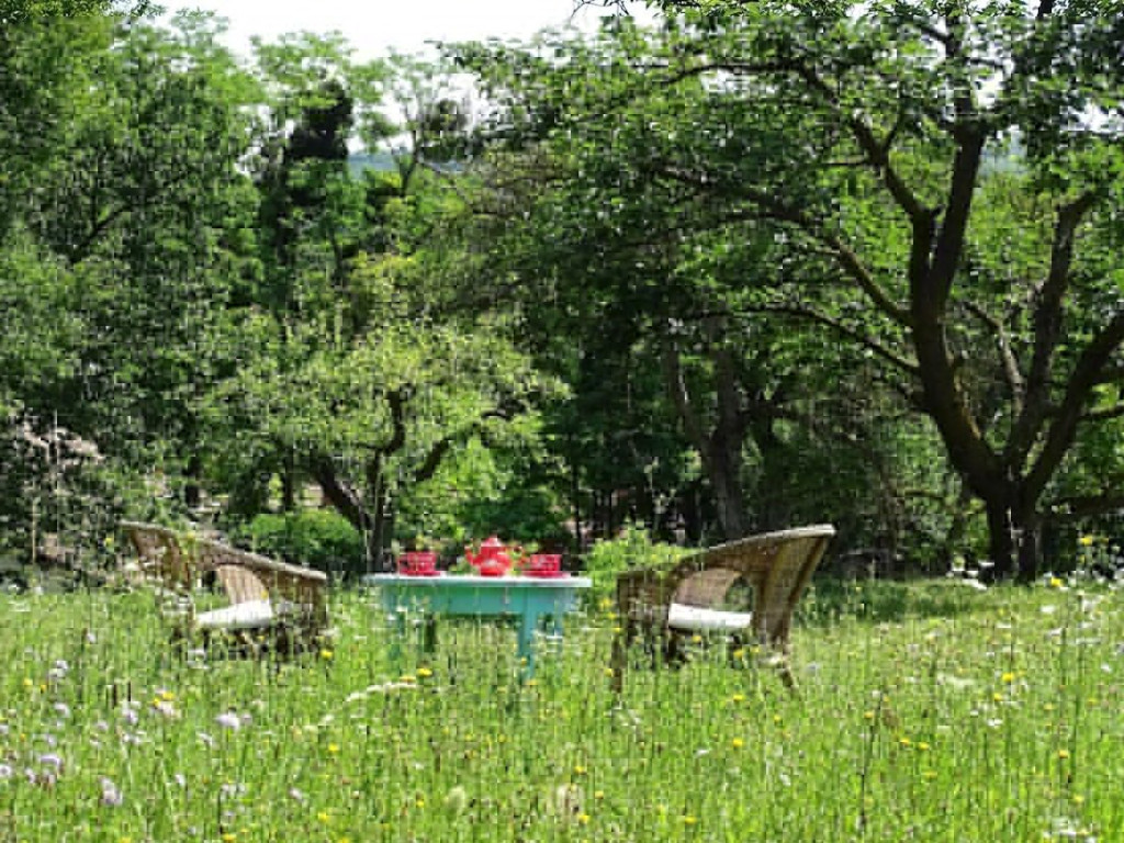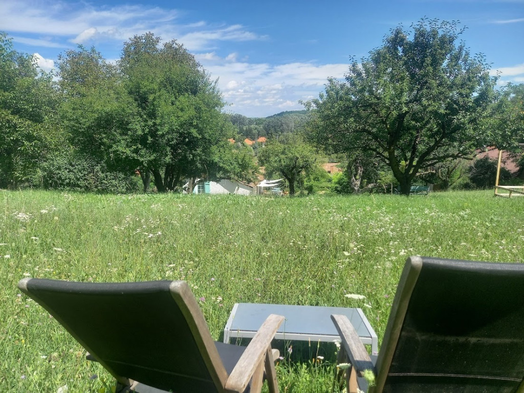 A közel 40 méter széles utcafronttal rendelkező telken számos gyümölcsfa található (alma, körte, cseresznye, meggy, szilva, dió), továbbá egy kisebb erdőrész és egy tágas mező, lenyűgöző panorámával.