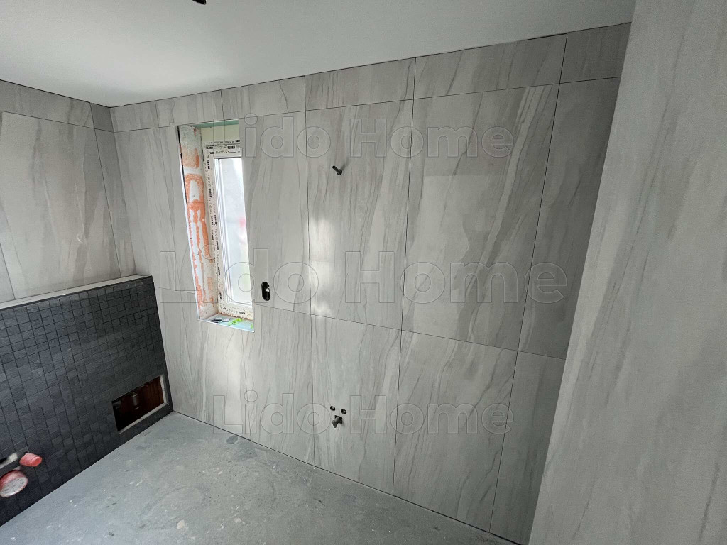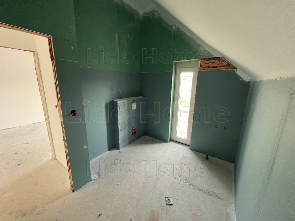 -a földszinten egy hálószoba, egy zuhanyzós fürdőszoba és egy amerikai konyhás nappali kapott helyet, míg az emeleten 3 szoba, egy kádas fürdőszoba és egy mosókonyha került kialakításra