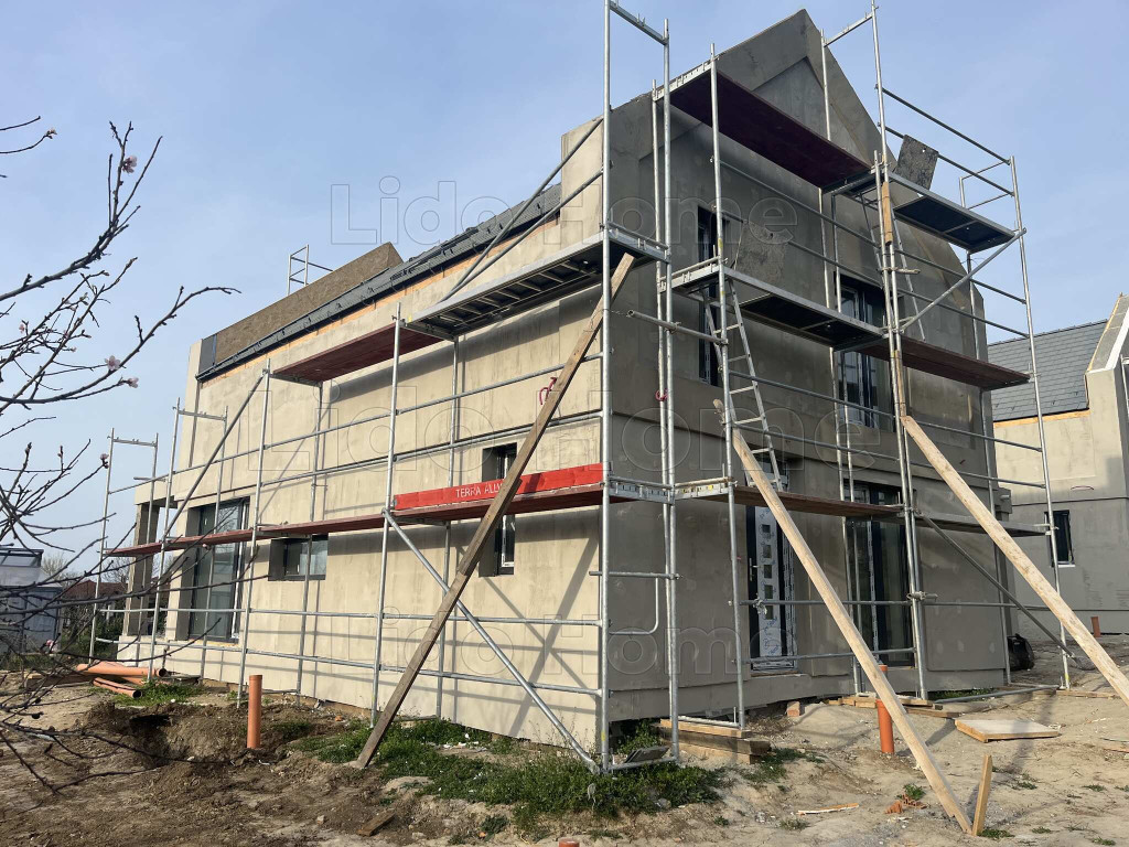 840 m2-en két ház épül, egymástól kerítéssel elválasztva. Még lehet választani a 2 épület közül, az egyikhez nagyobb (~450 m2), míg a másikhoz valamivel kisebb (~380 m2) telek tartozik.