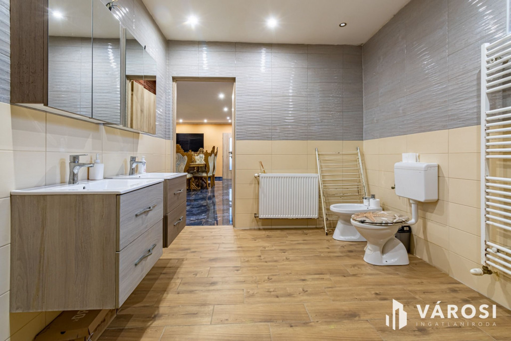 Teljesen új tetőszerkezet, bramac betoncserép héjazattal, teljes külső, padlófűtés alatti és lábazati szigeteléssel, a külső színezés még hátravan.