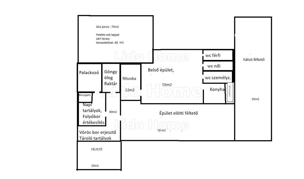 - A 127 m2-es gazdasági épület, és az épület alatt lévő 75m2- es boros pince egy 2027 m2-es telken található, Balatonlellén családi házas övezetben, 1000 méter távolságban a legközelebbi szabad strandtól.