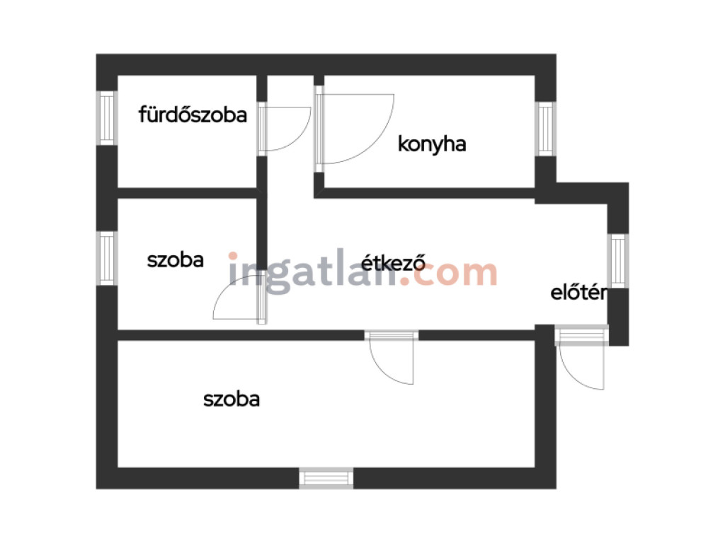 Az ingatlanban két szoba, egy fürdőszoba, konyha,étkező, valamint kamra található.