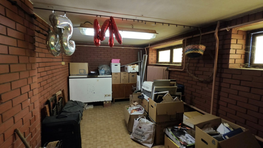 A pince szinten kazánnház , garázs , konyha közlekedő helységek lettek kialakítva klinker téglával a falon.